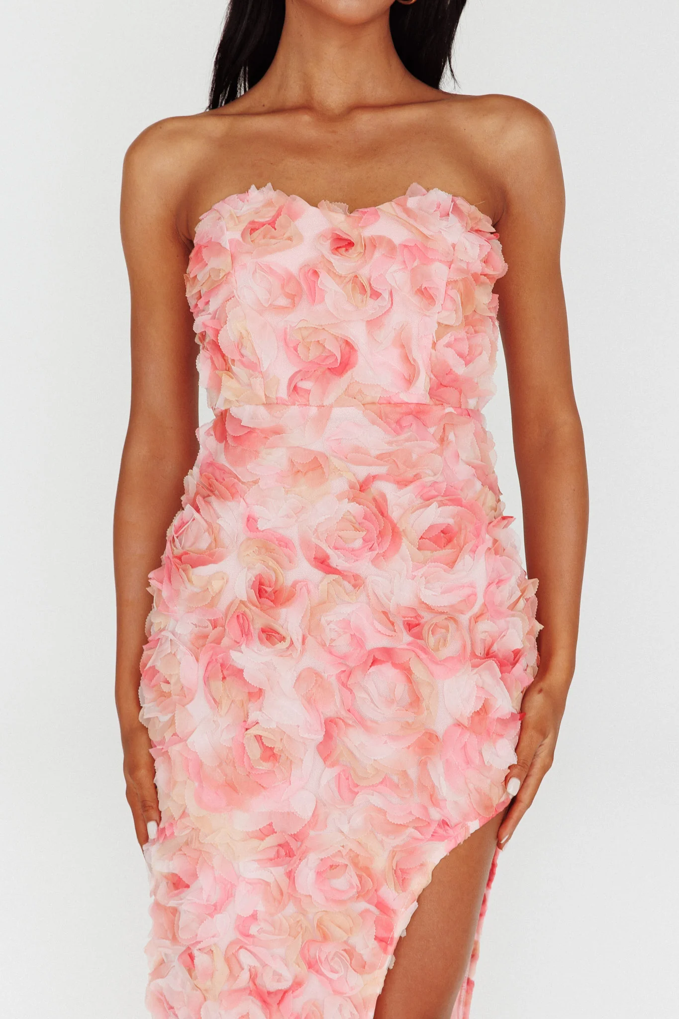 Nirvana Halterneck Split Midi Dress Floral Pink