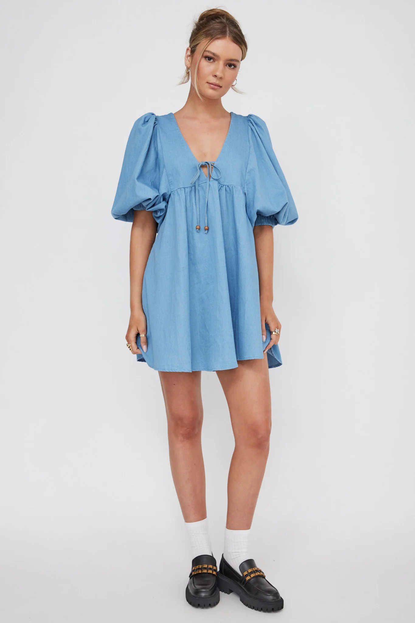 New Haven Puff Sleeve Swing Dress Denim