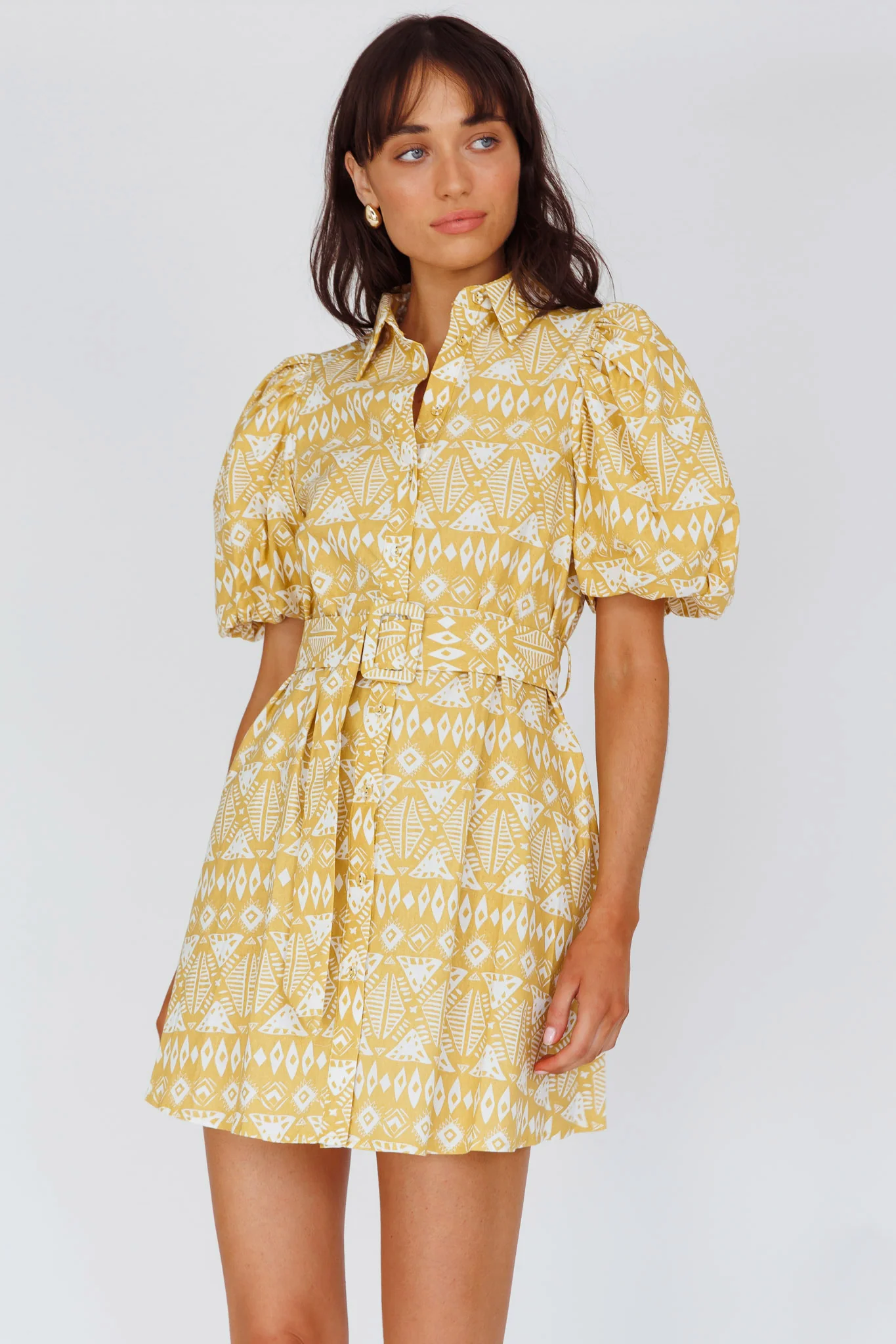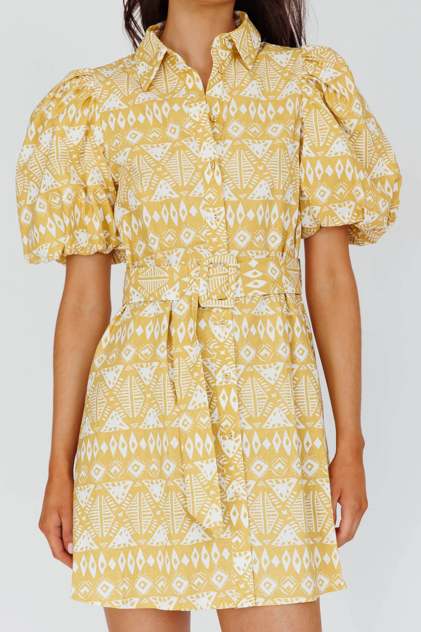 Nanette Puff Sleeve Belted Mini Dress Print Yellow