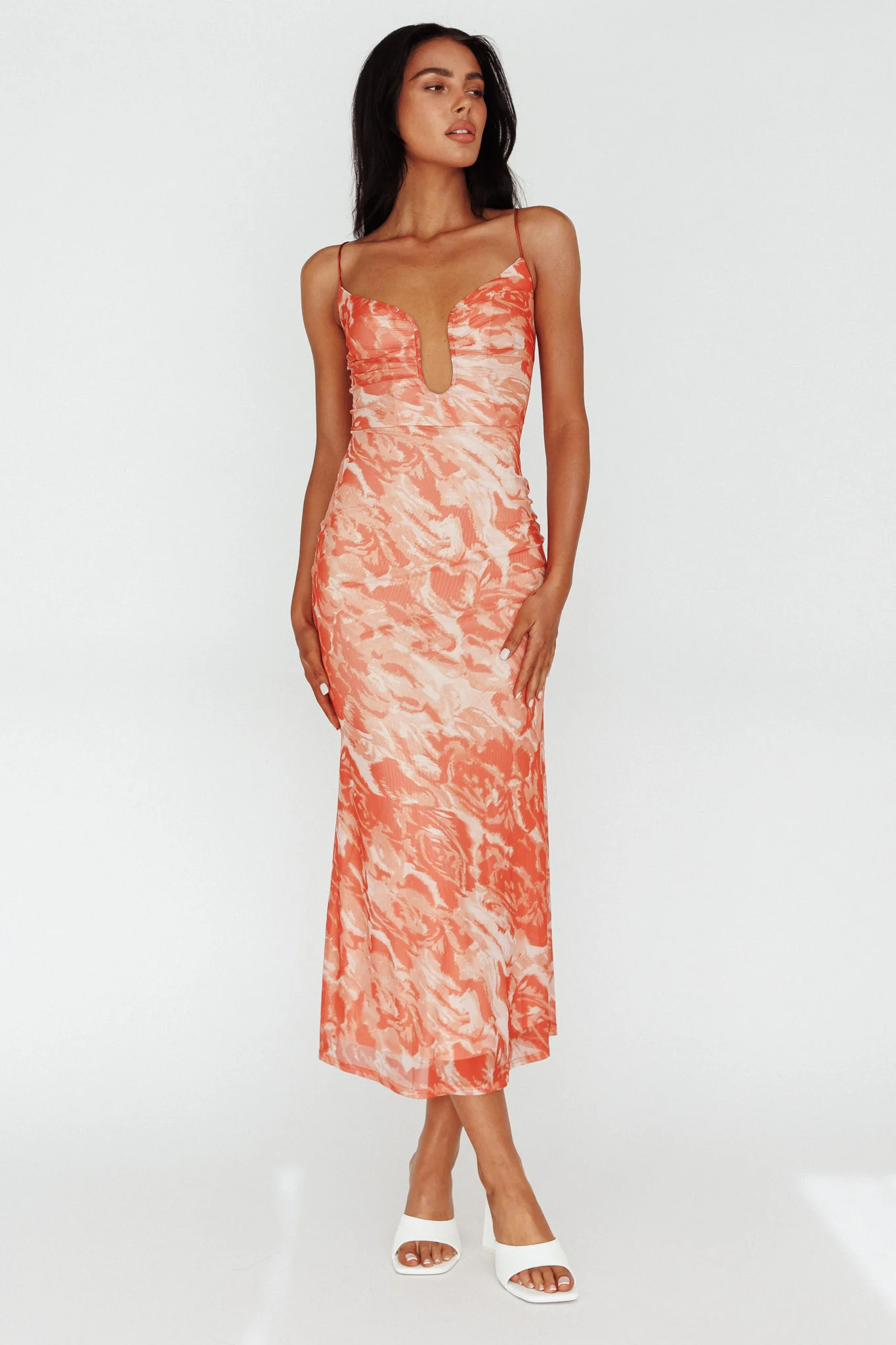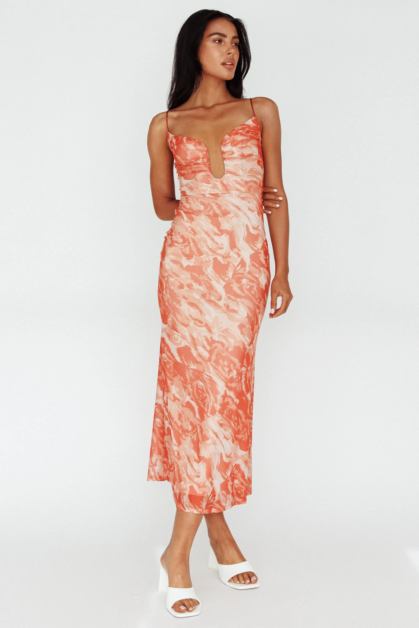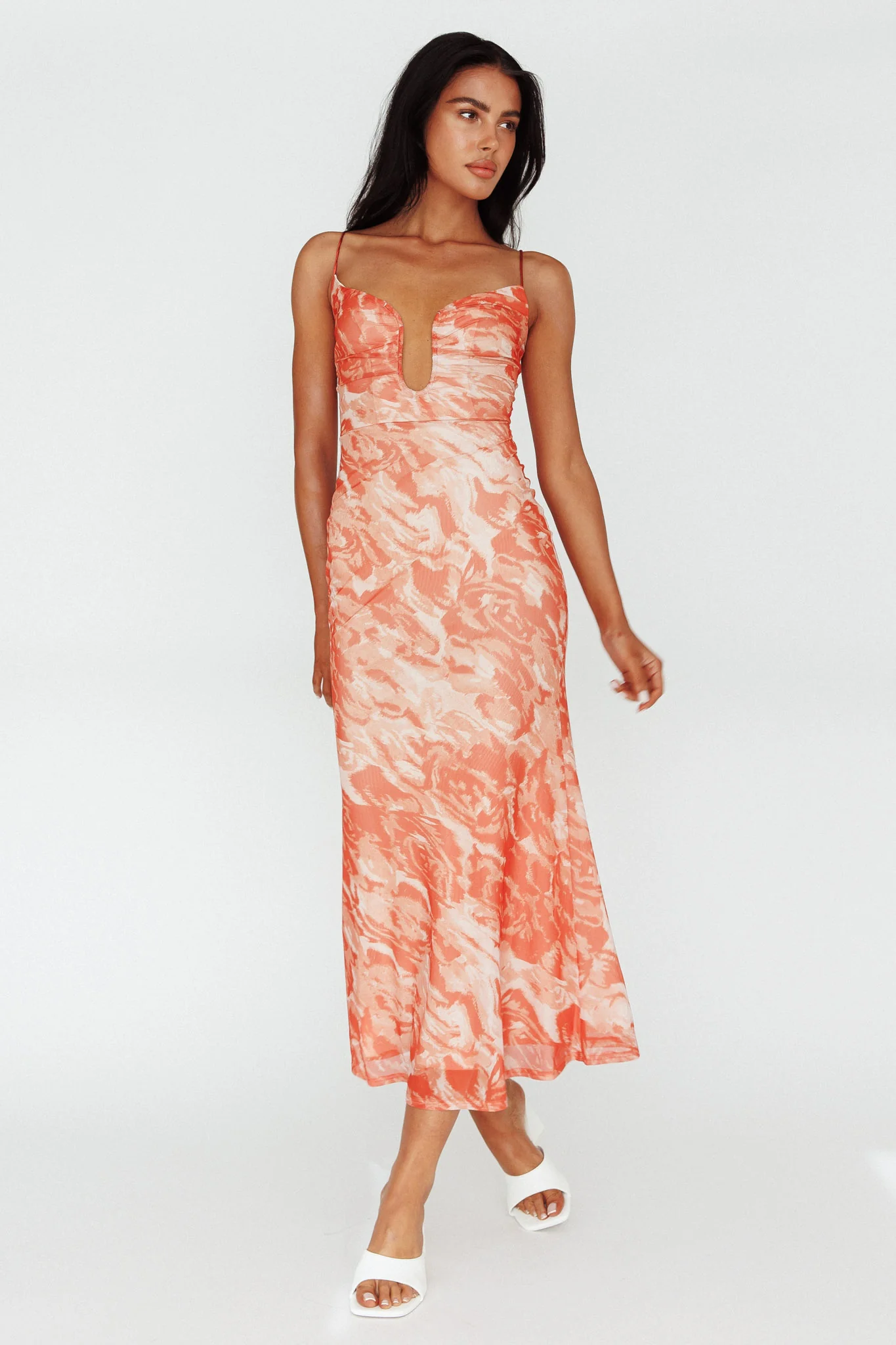 Nouveau U-Neckline Midi Dress Marbled Orange