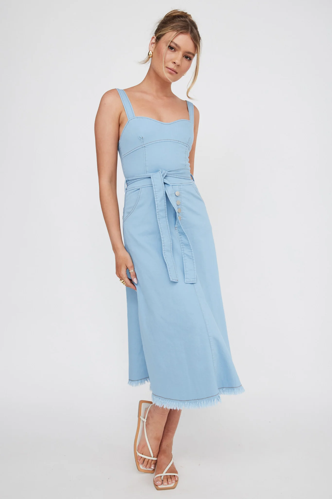 Zenyl Raw Hem Midi Dress Blue