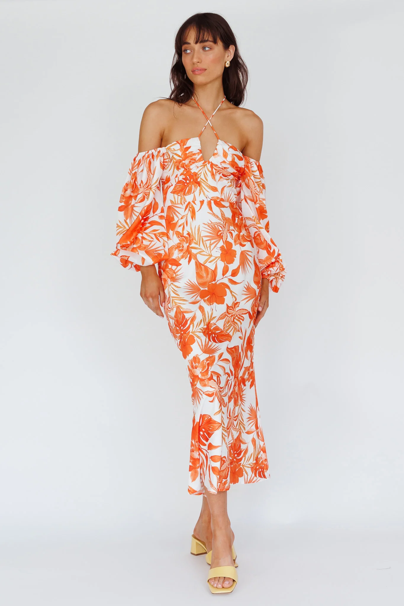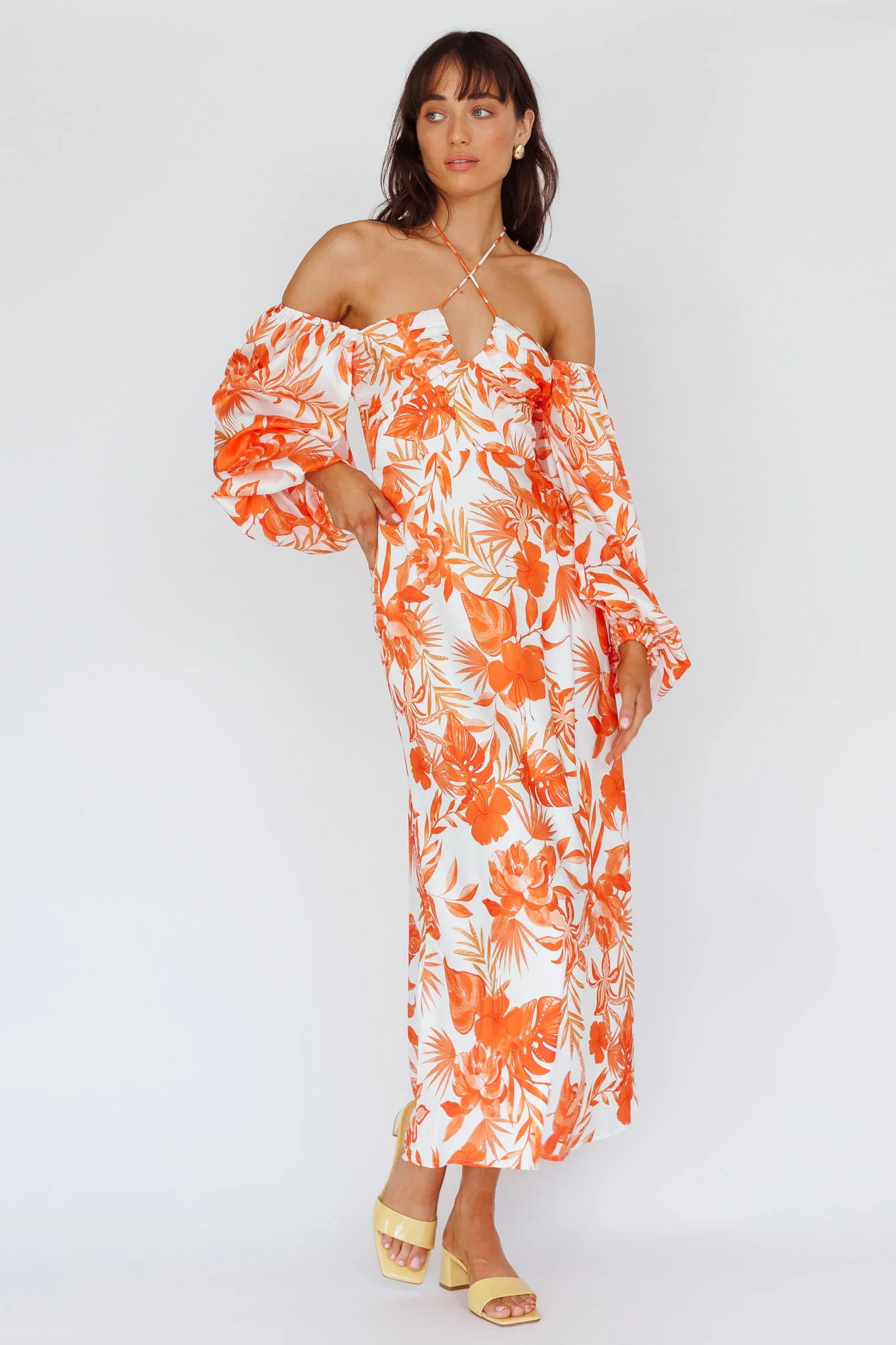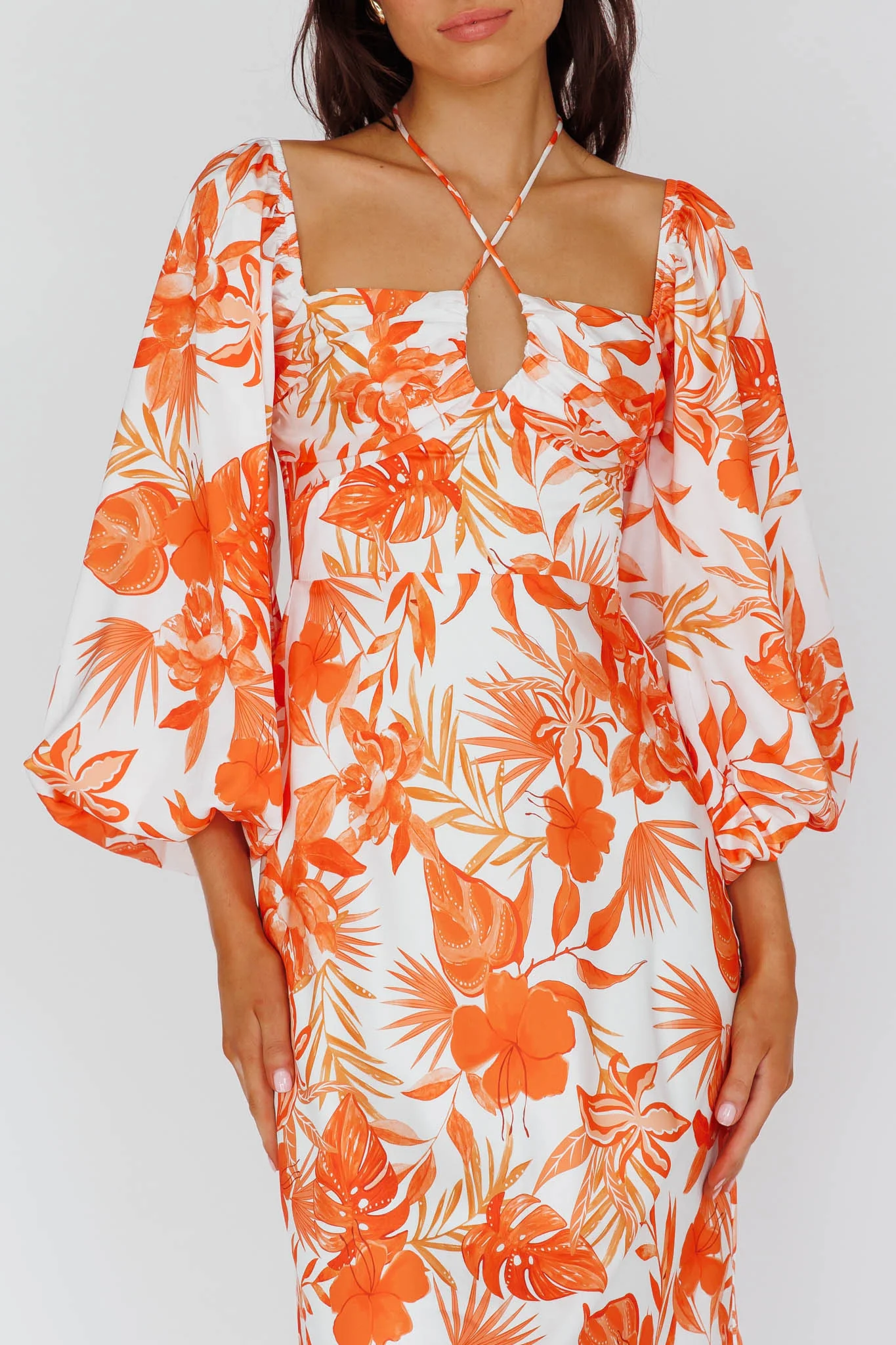 Nyree Long Sleeve Maxi Dress Tropical Orange