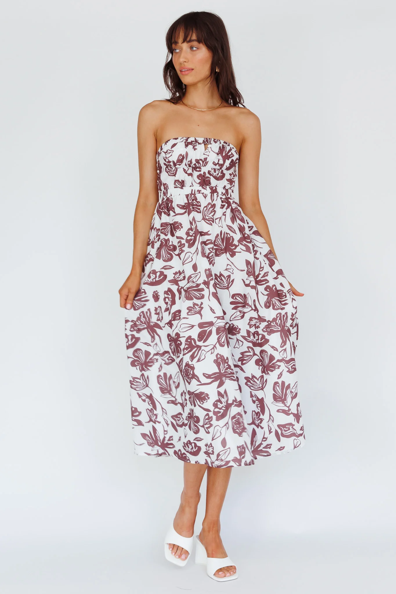 Caloundra Strapless Midi Dress Floral Walnut