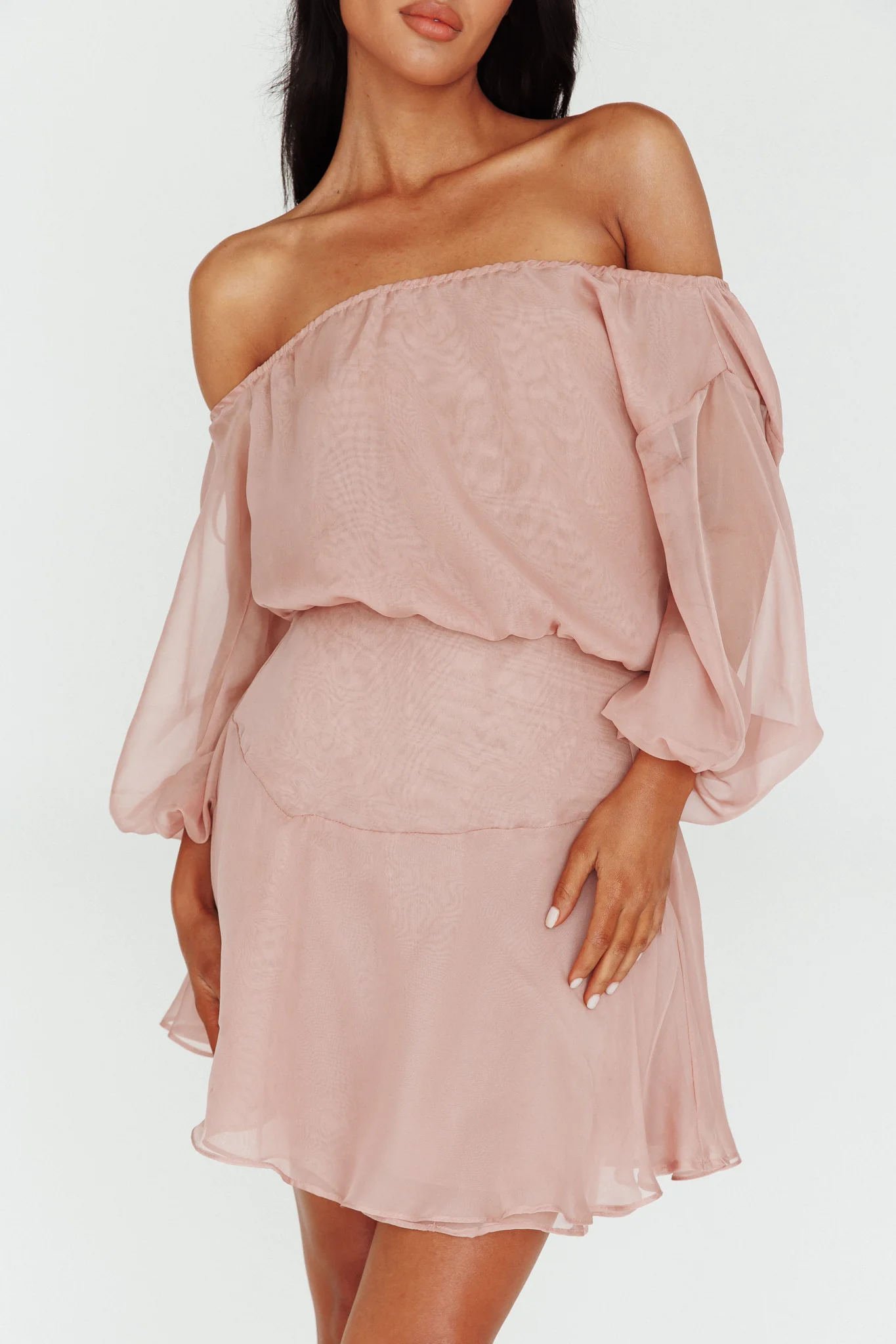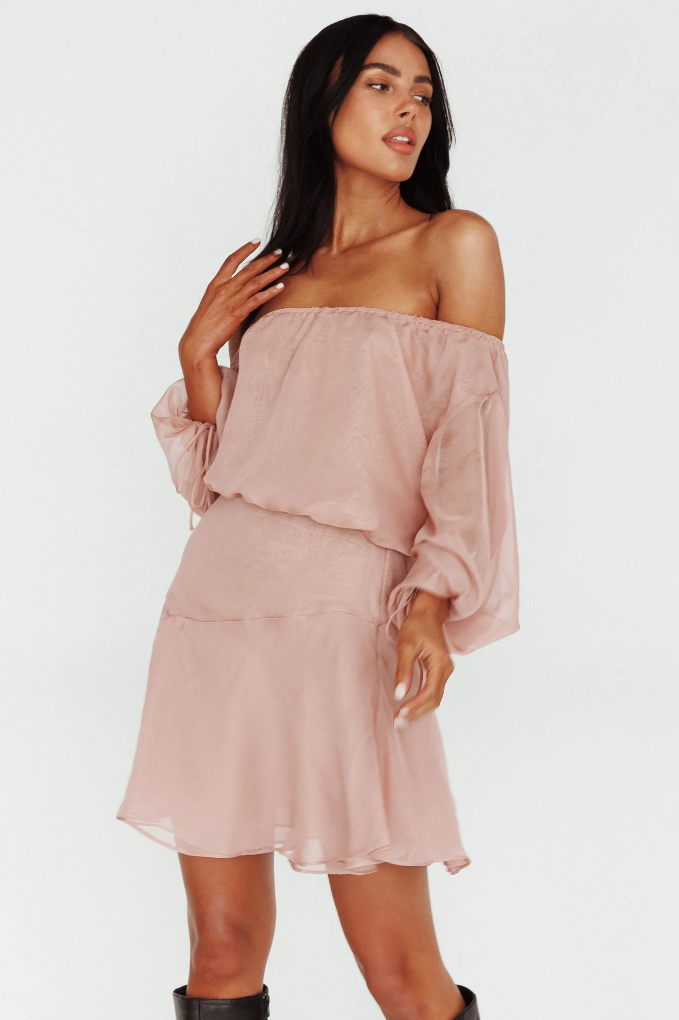 Mariona Off Shoulder Long Sleeve Mini Dress Blush