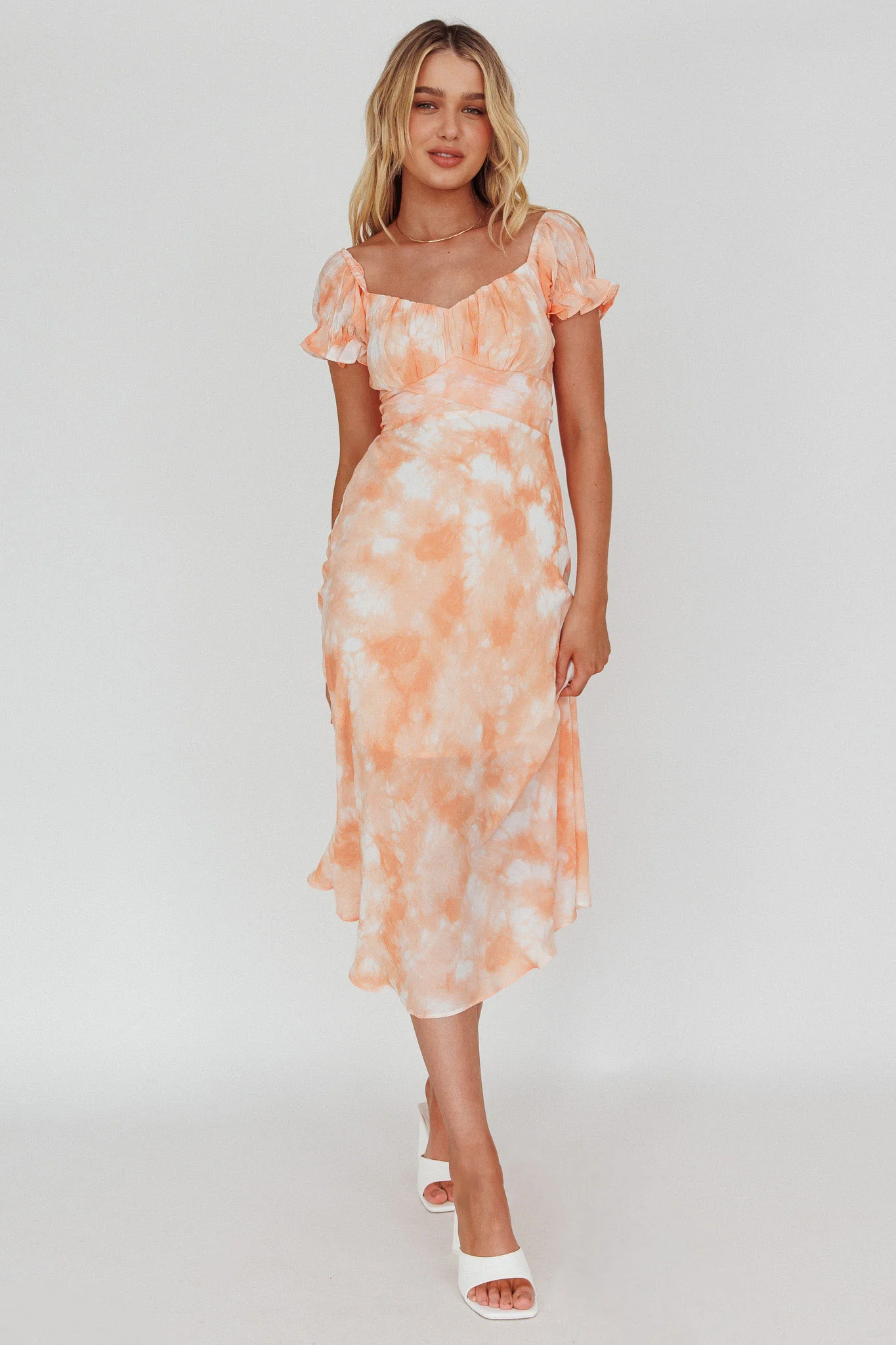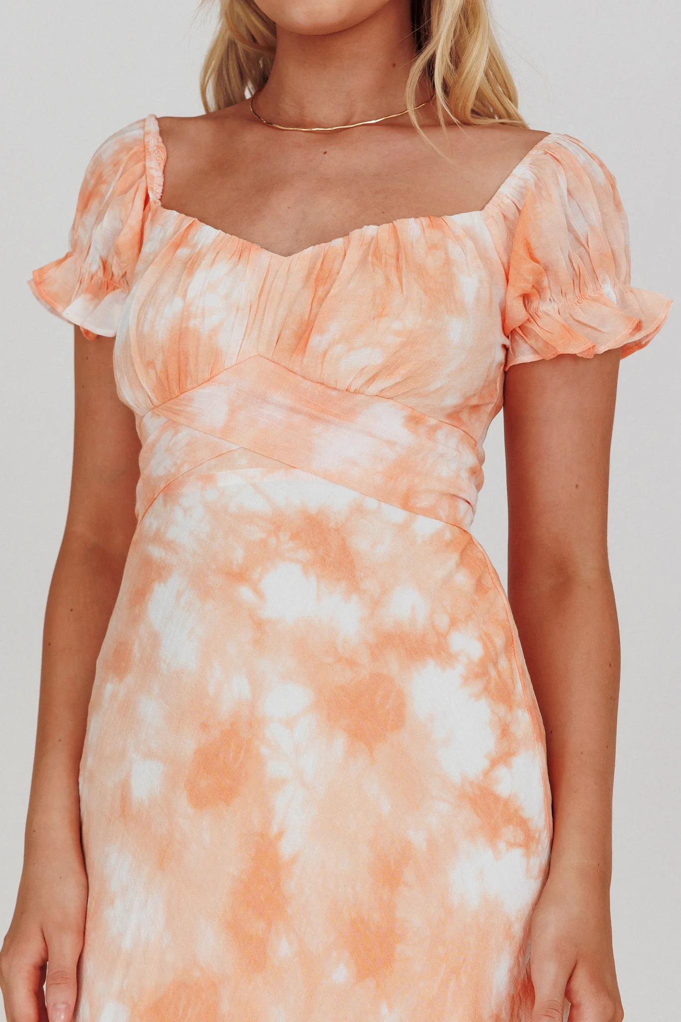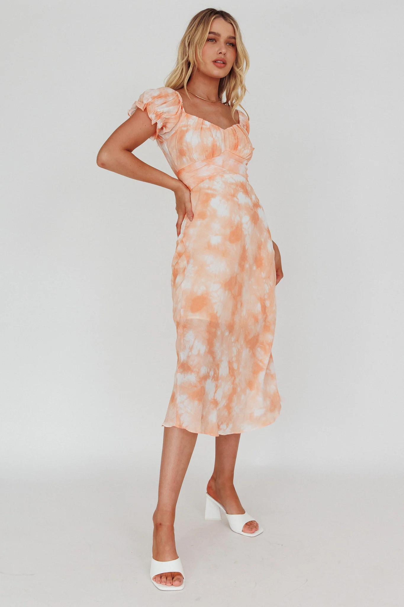 Linka Puff Sleeve Midi Dress Tie-Dye Orange