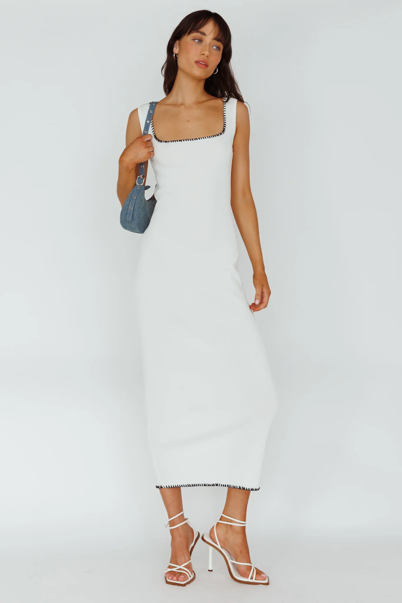 North Shore Blanket Stitch Knit Maxi Dress White