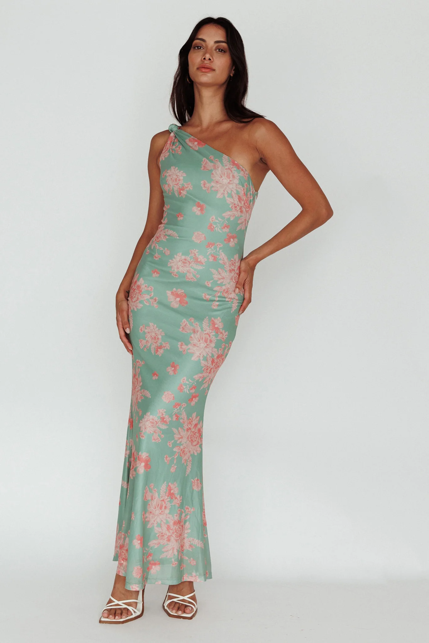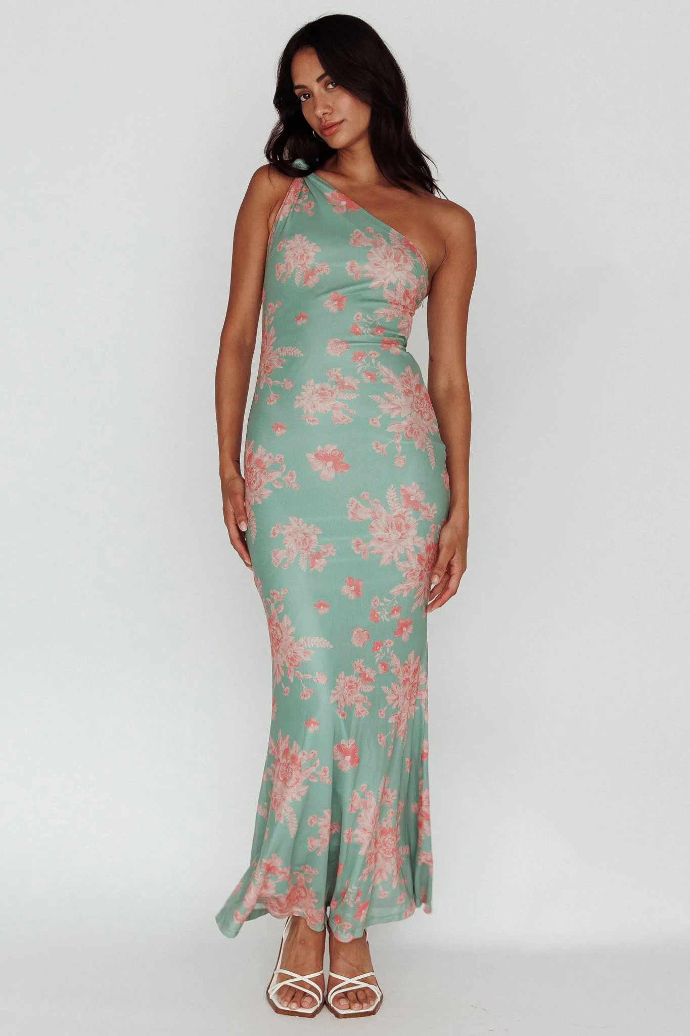 Portland One-Shoulder Jersey Maxi Dress Floral Green