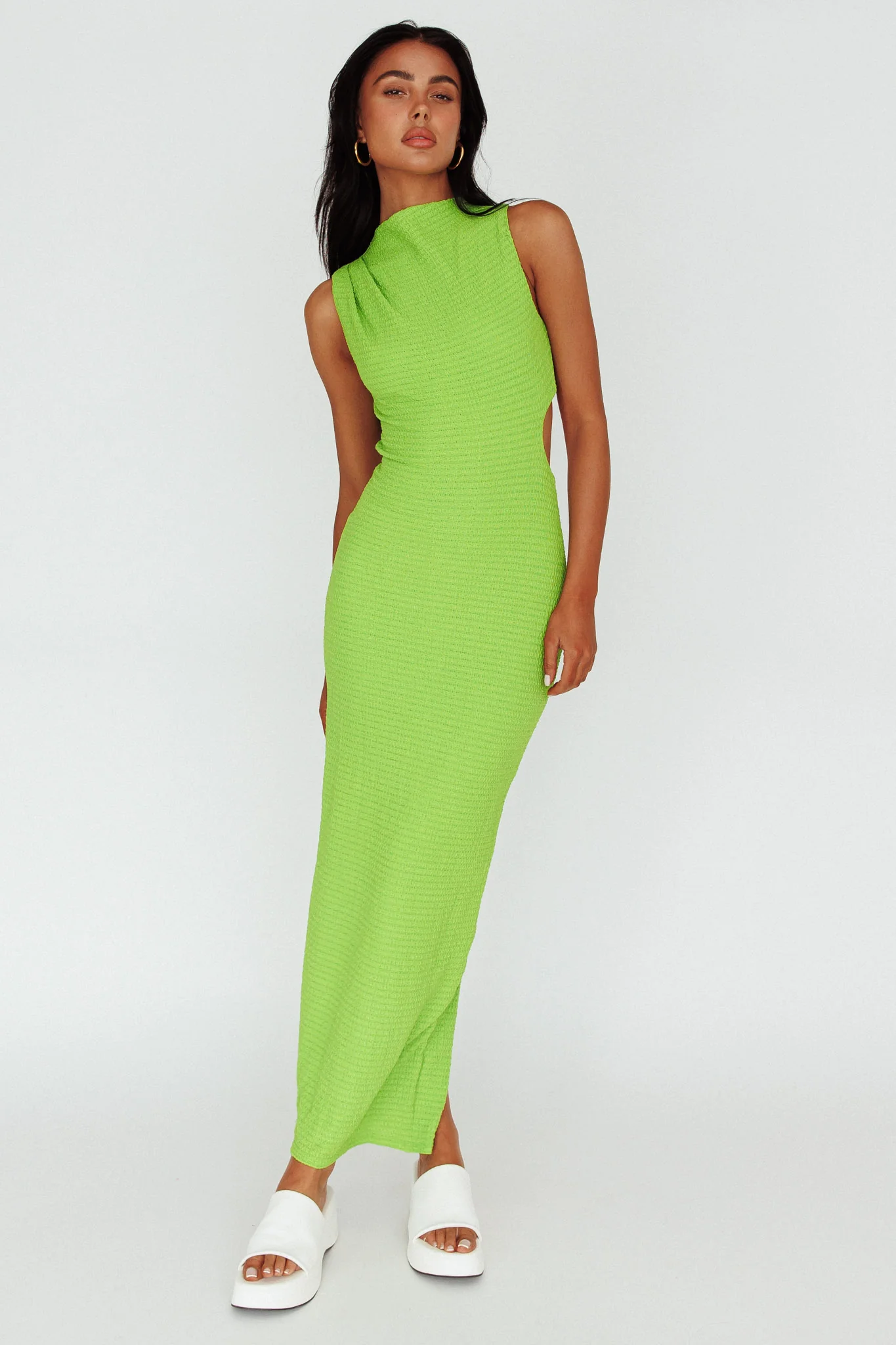 Yindi Sleeveless Cut-Out Waist Maxi Dress Lime