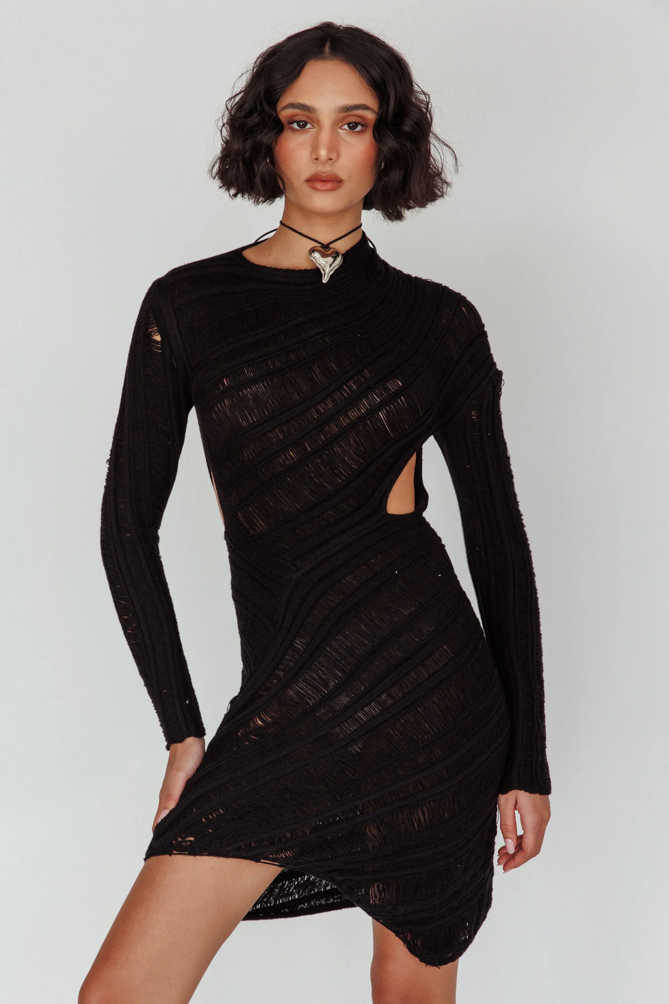 Leyanne Crochet Long Sleeve Cut-Out Mini Dress Black