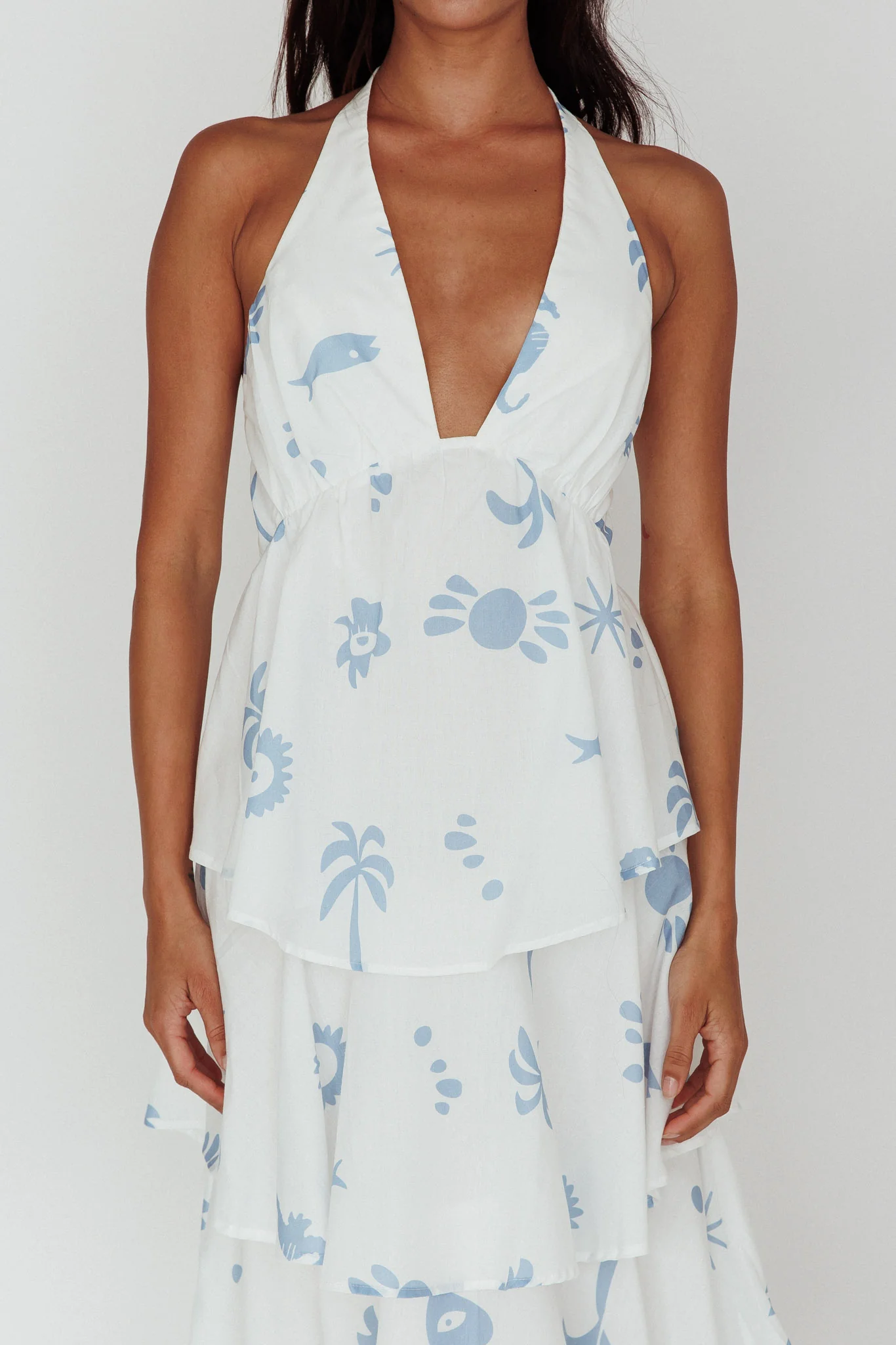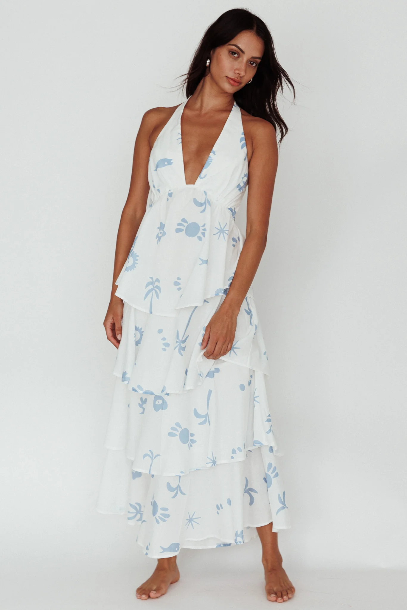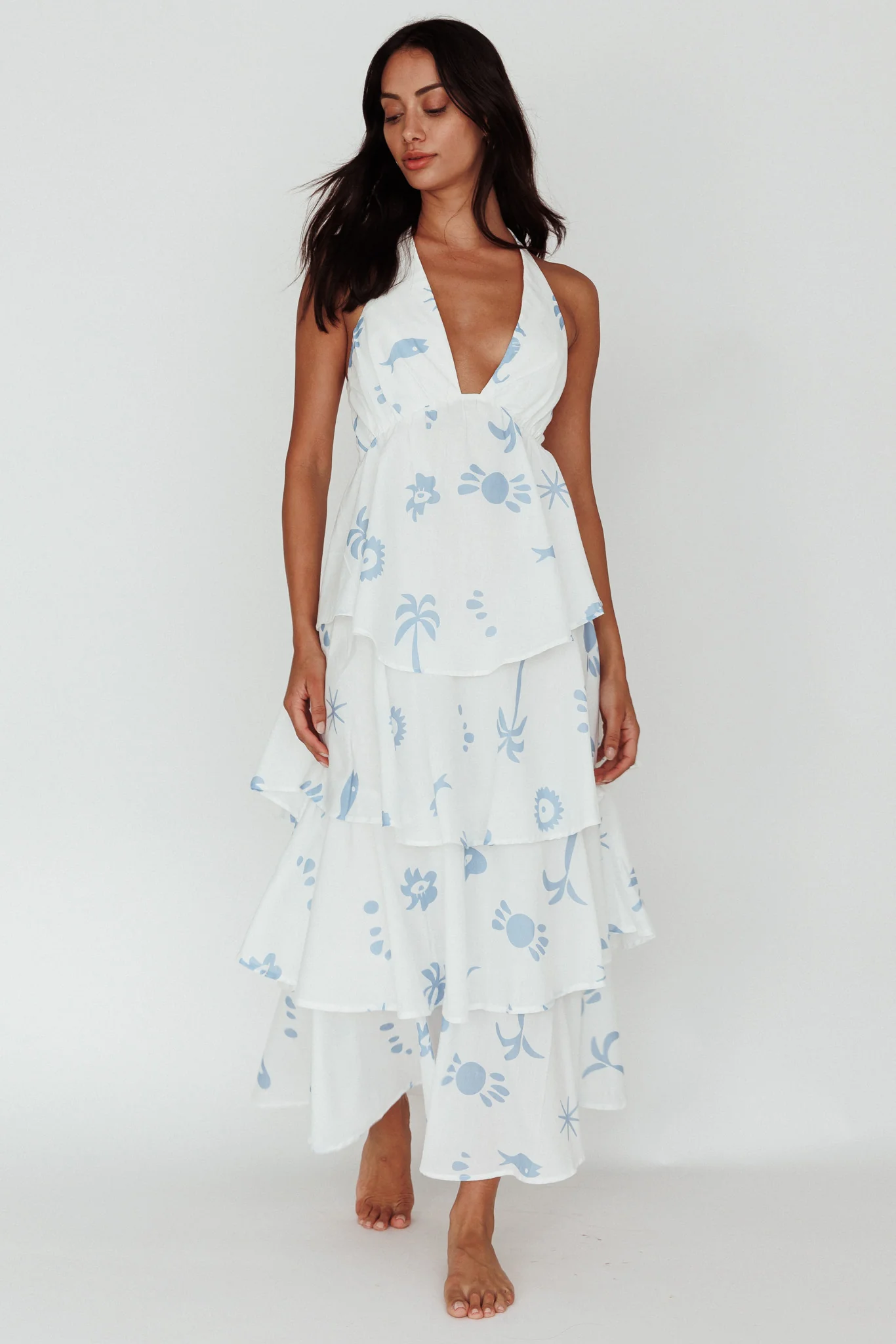 Catalina Tiered Ruffle Maxi Dress White Blue