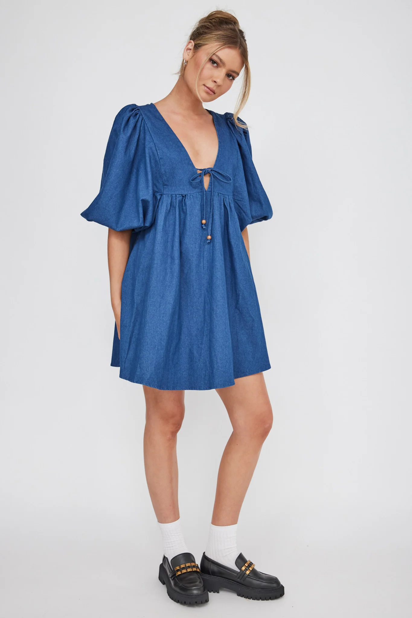 Diaz Bow Back Babydoll Mini Dress Pop Pink