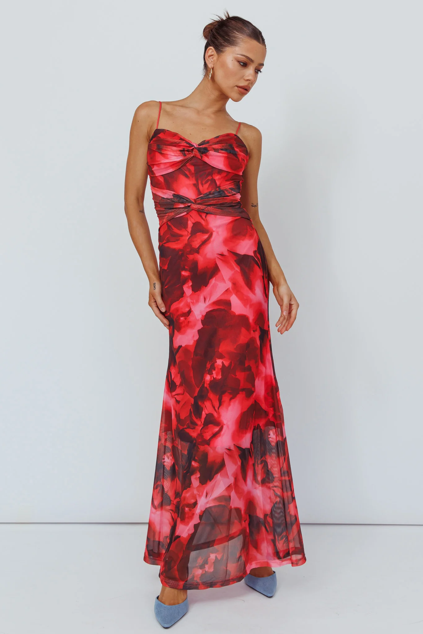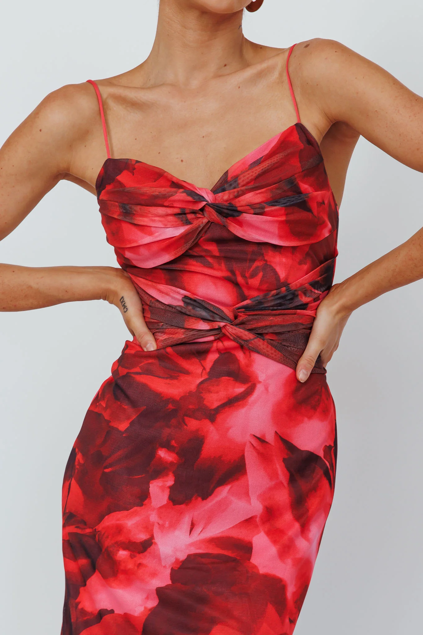 Latisha Strappy Cowl Back Midi Dress Floral Red