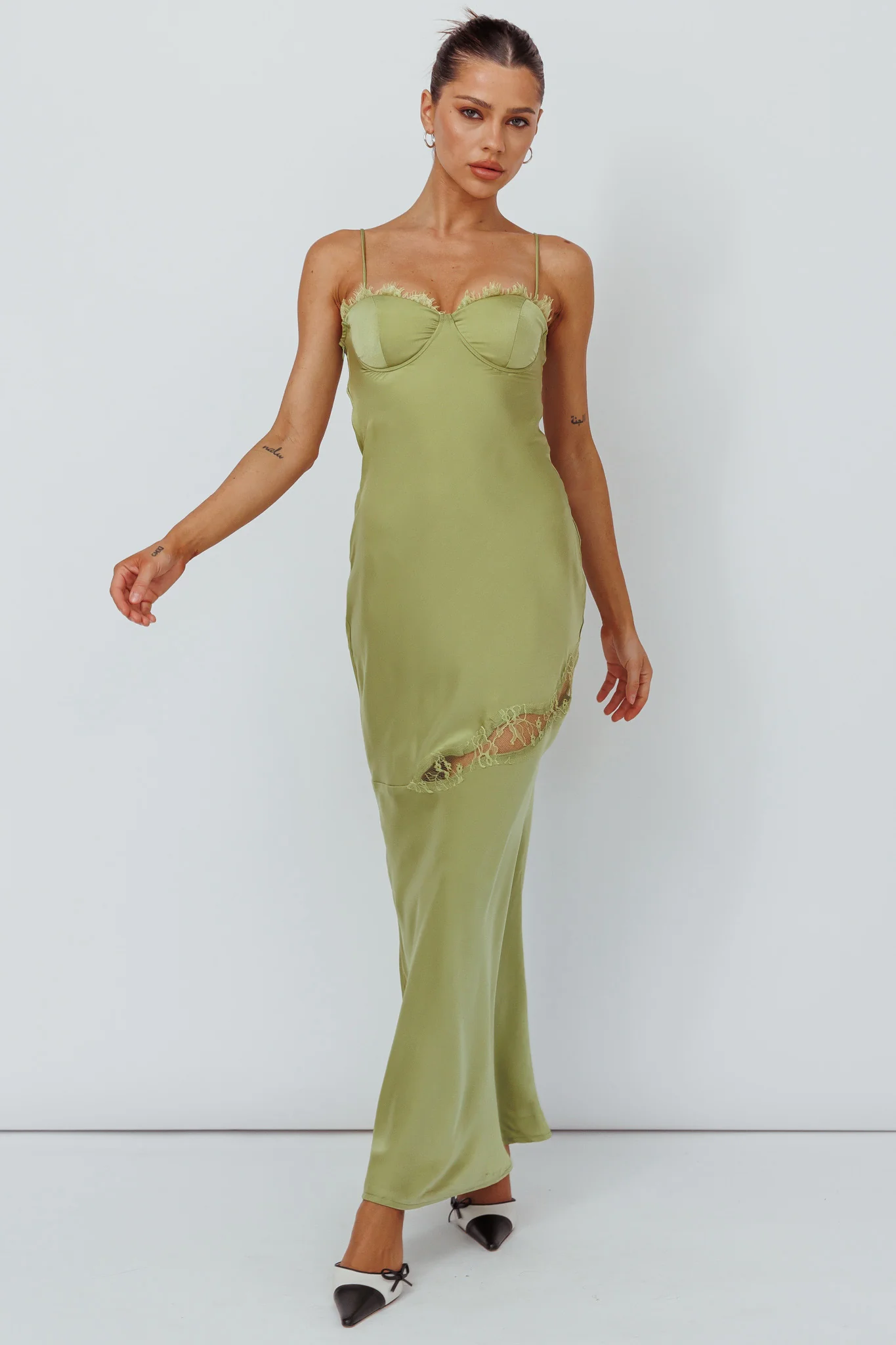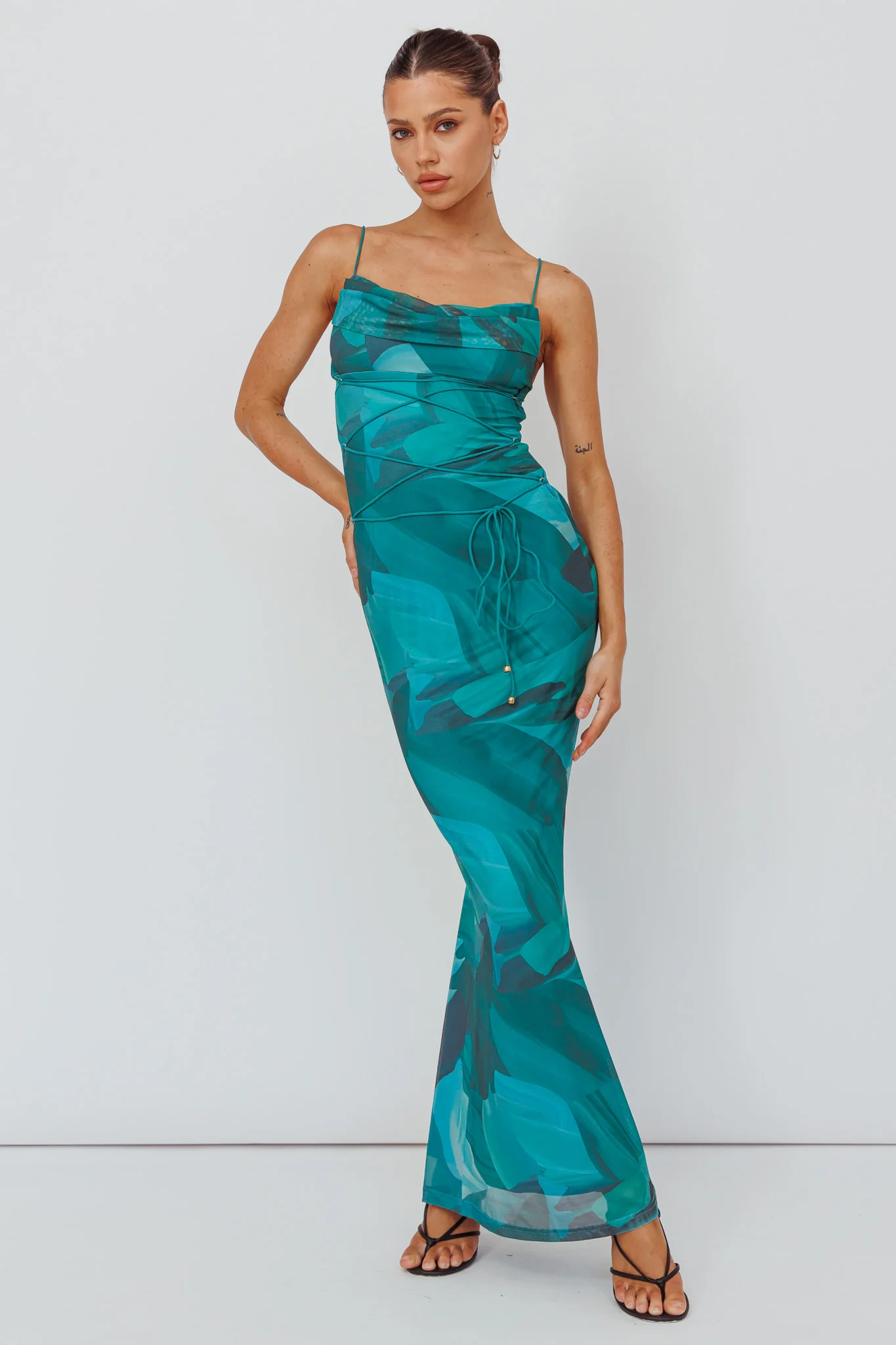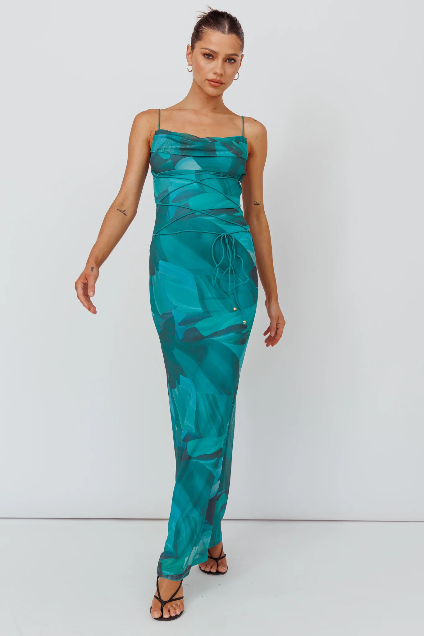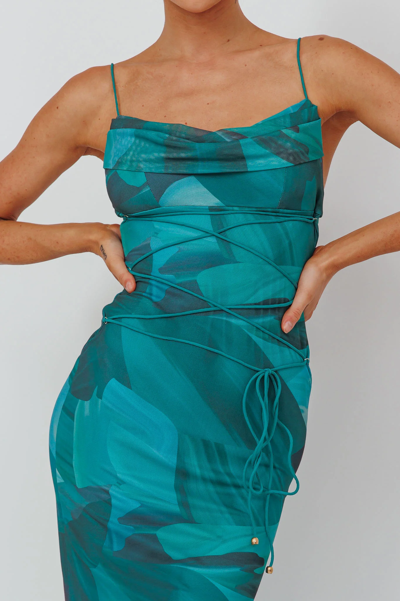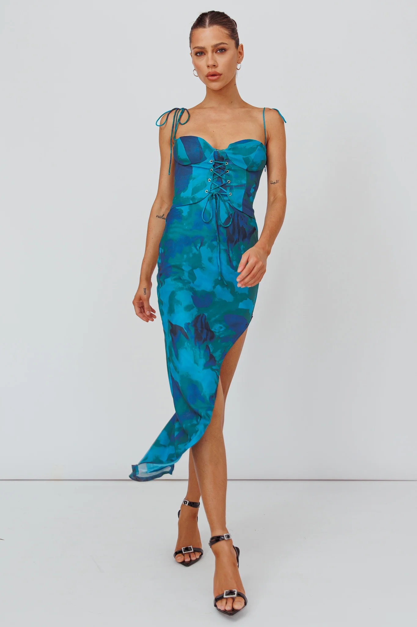 Gabrielle Laced Bodice Midi Dress Floral Green