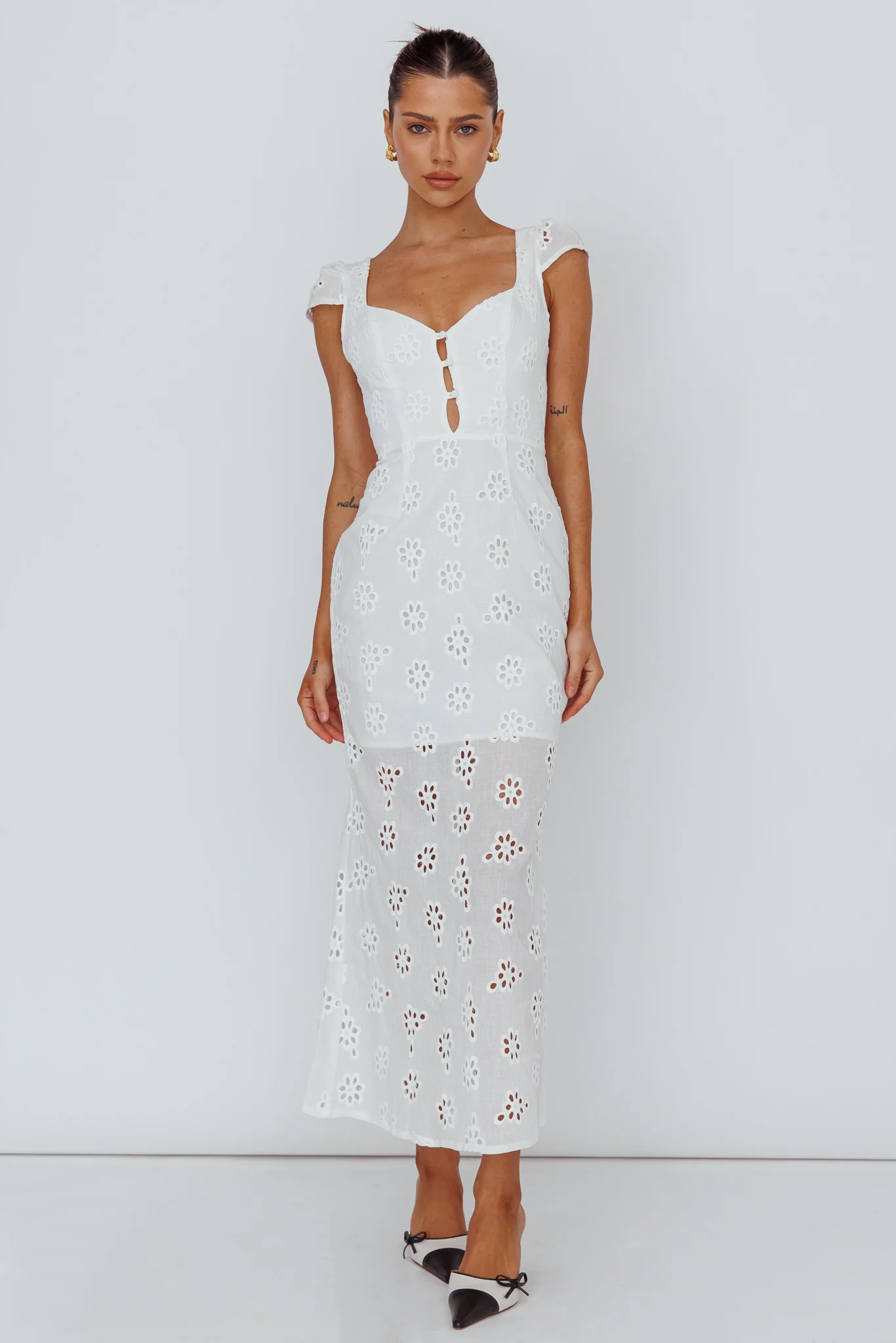 Bohemian Sun Cap Sleeve Eyelet Midi Dress White