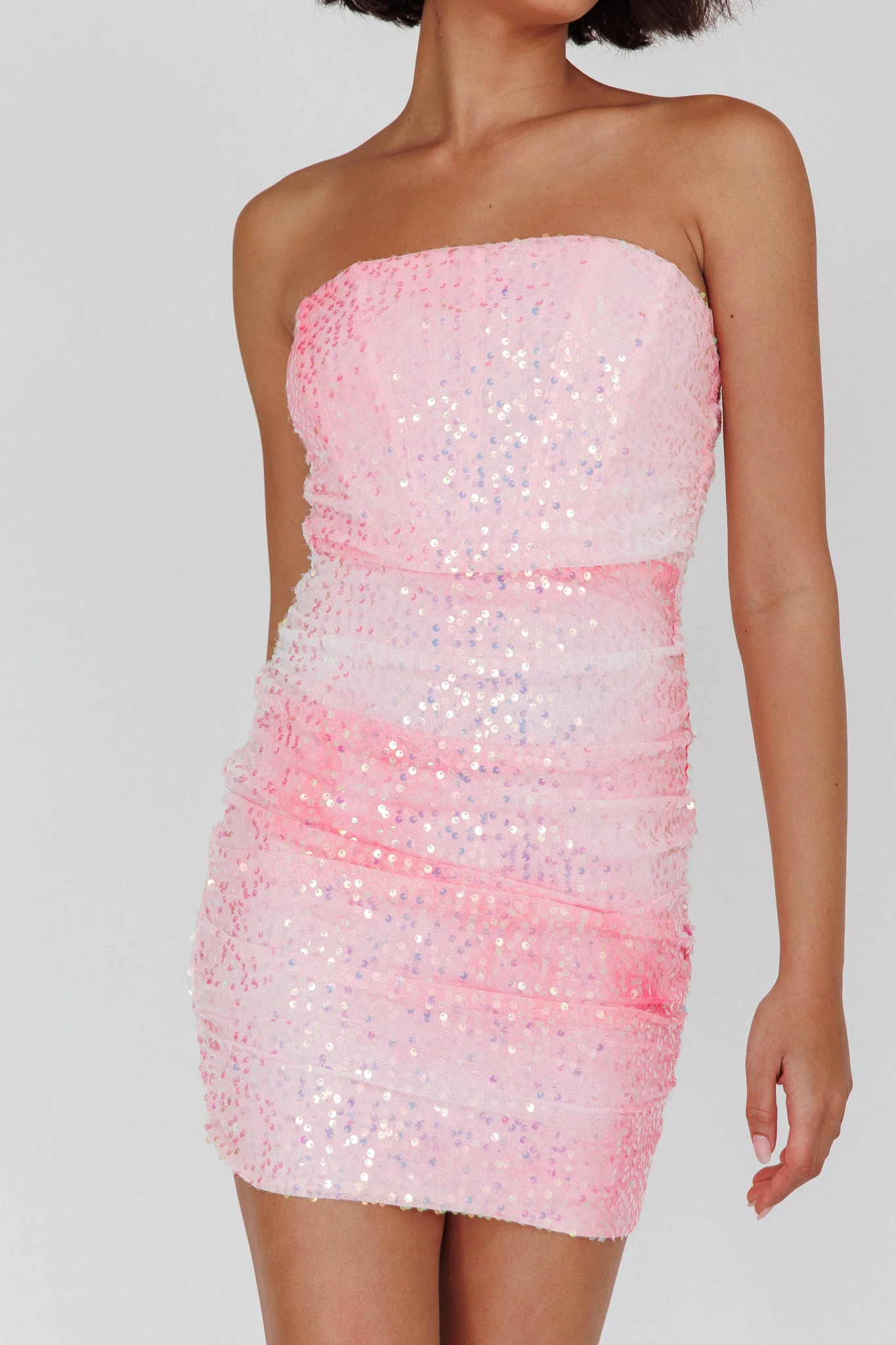 Agyness Rose Sash Feature Mini Dress Baby Pink