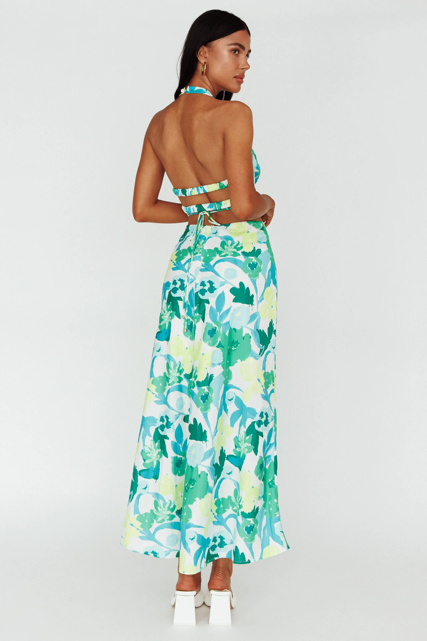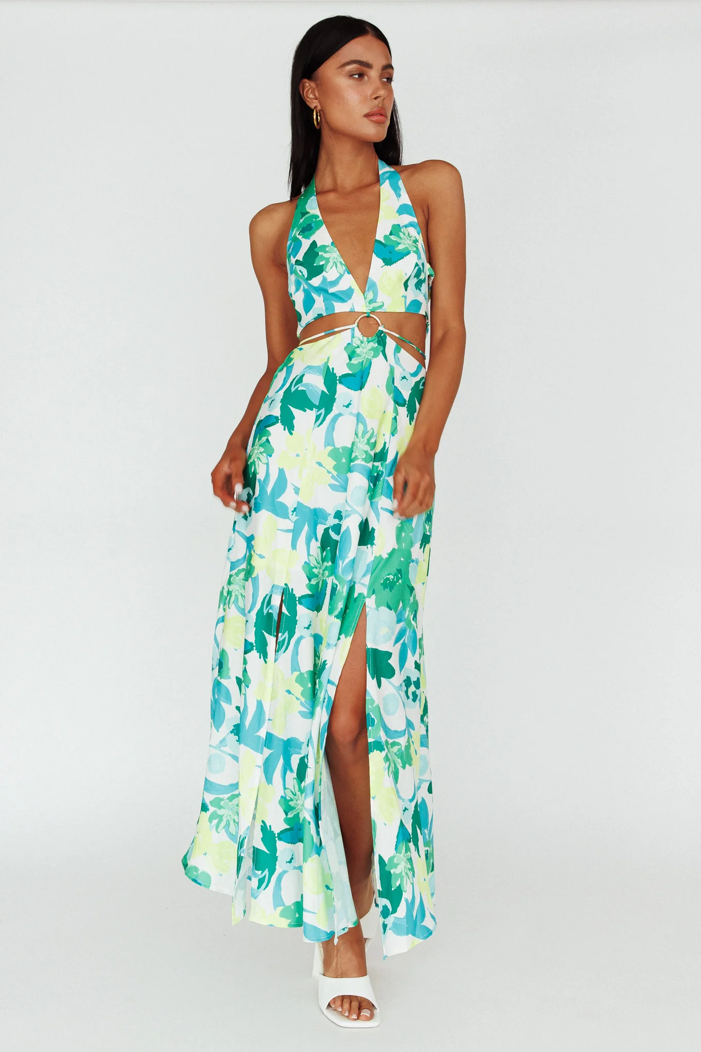 Tuscan Summers Cut-Out Midi Dress Floral Green