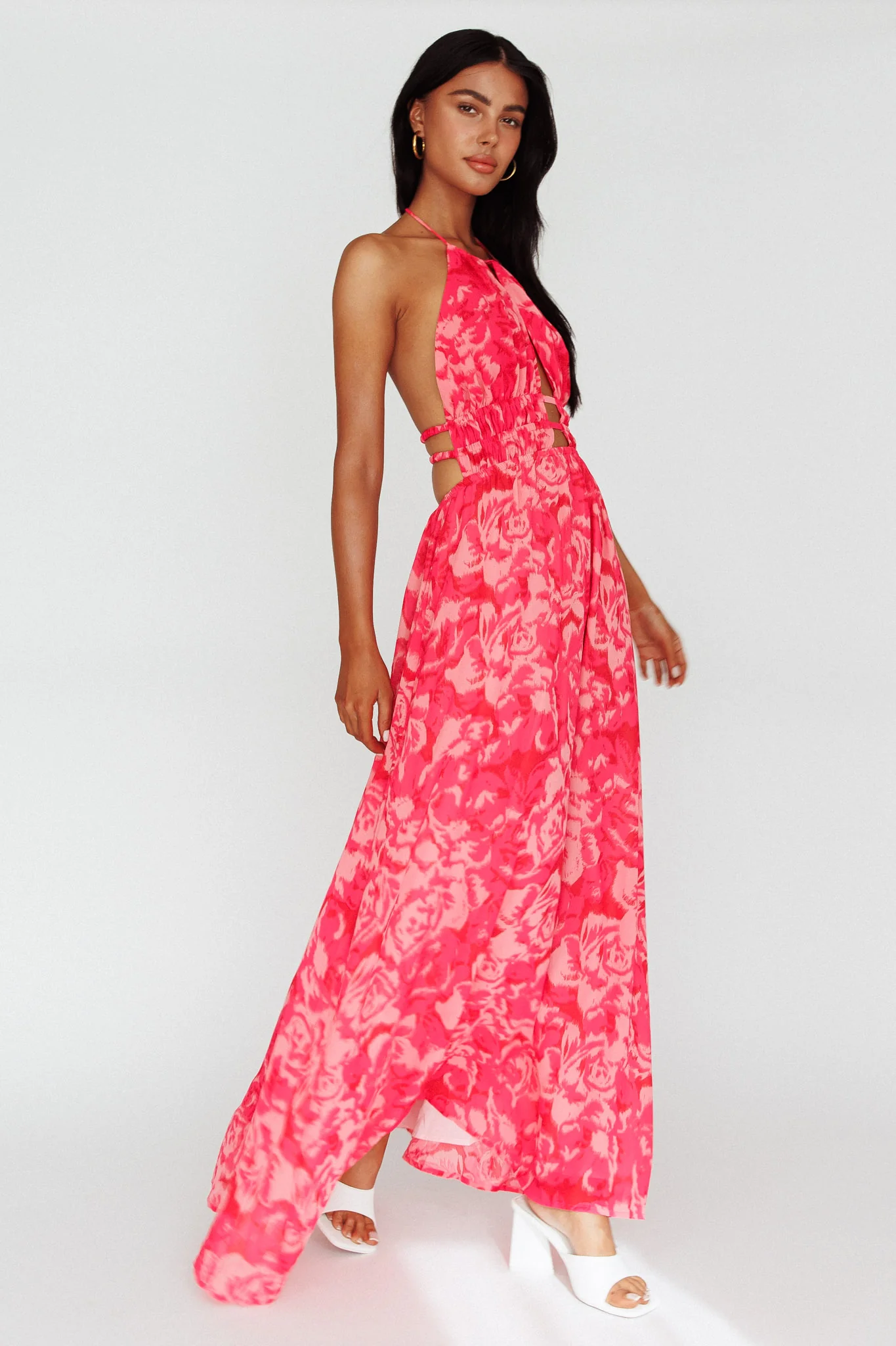 Cyndi Open Back Halterneck Maxi Dress Floral Pink