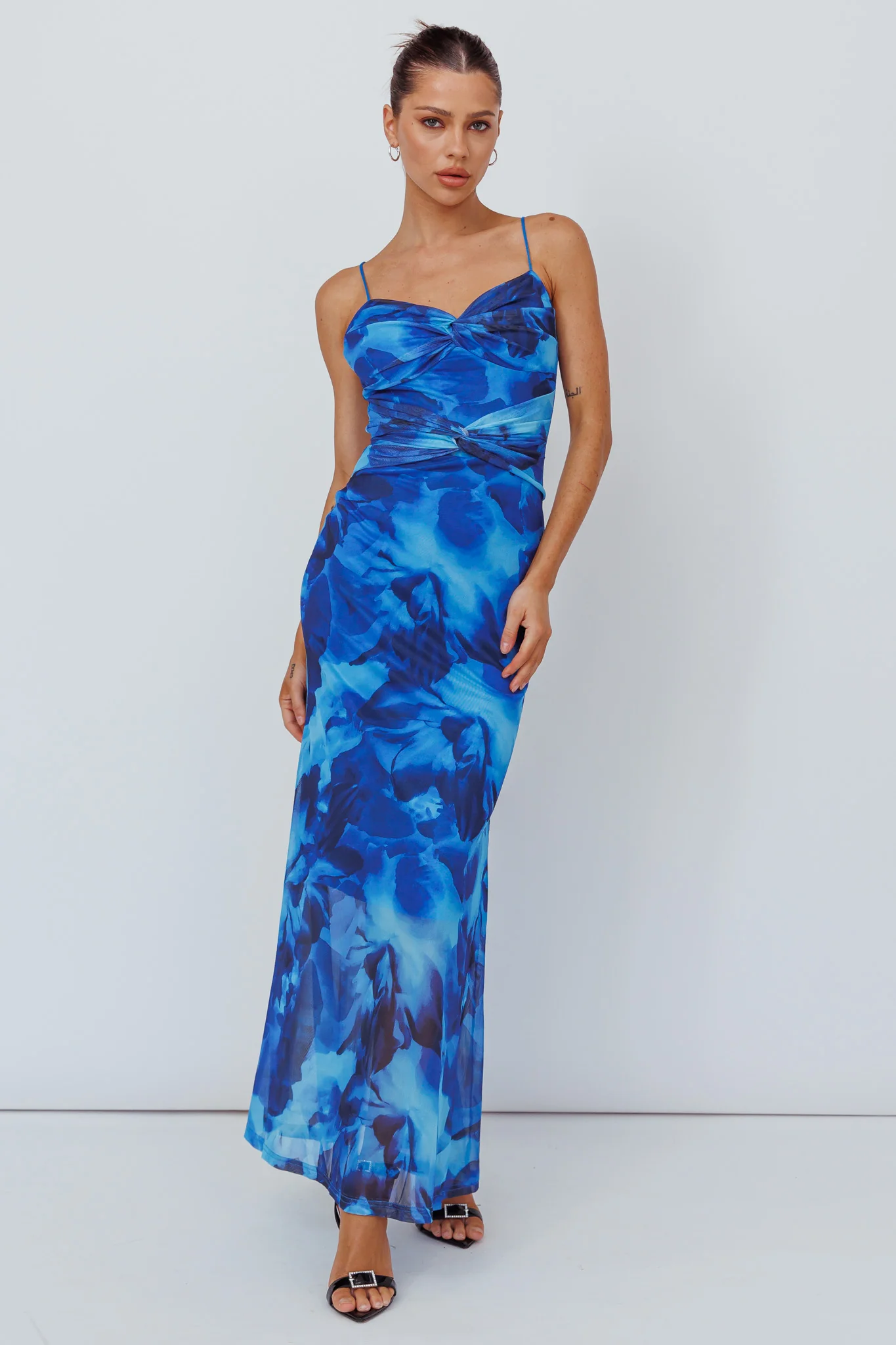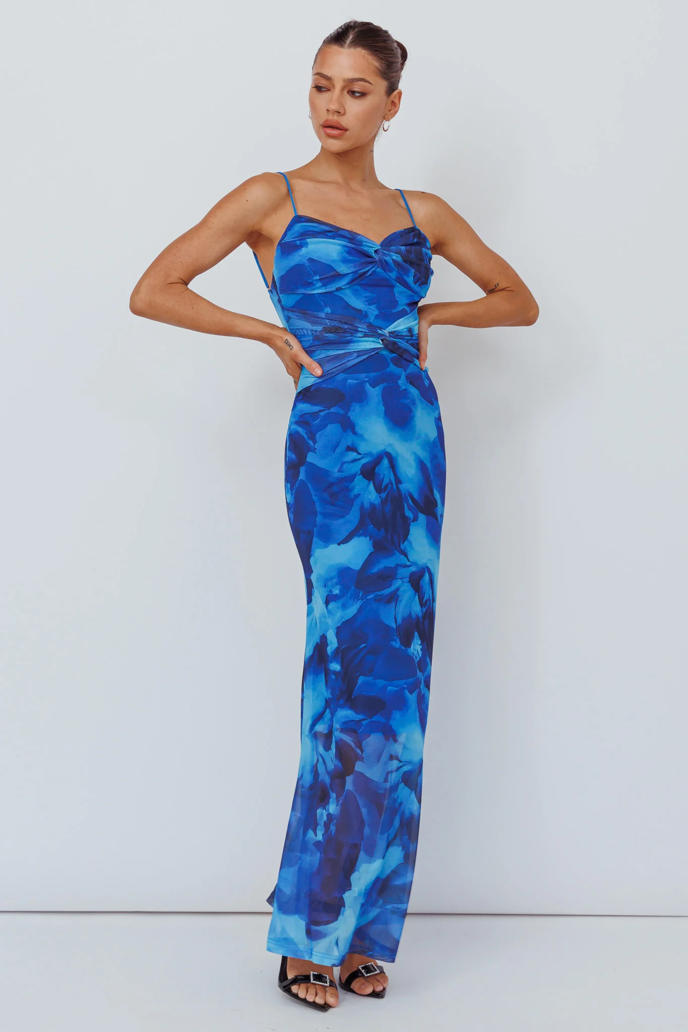 Beulah Twist Bodice Maxi Dress Floral Blue