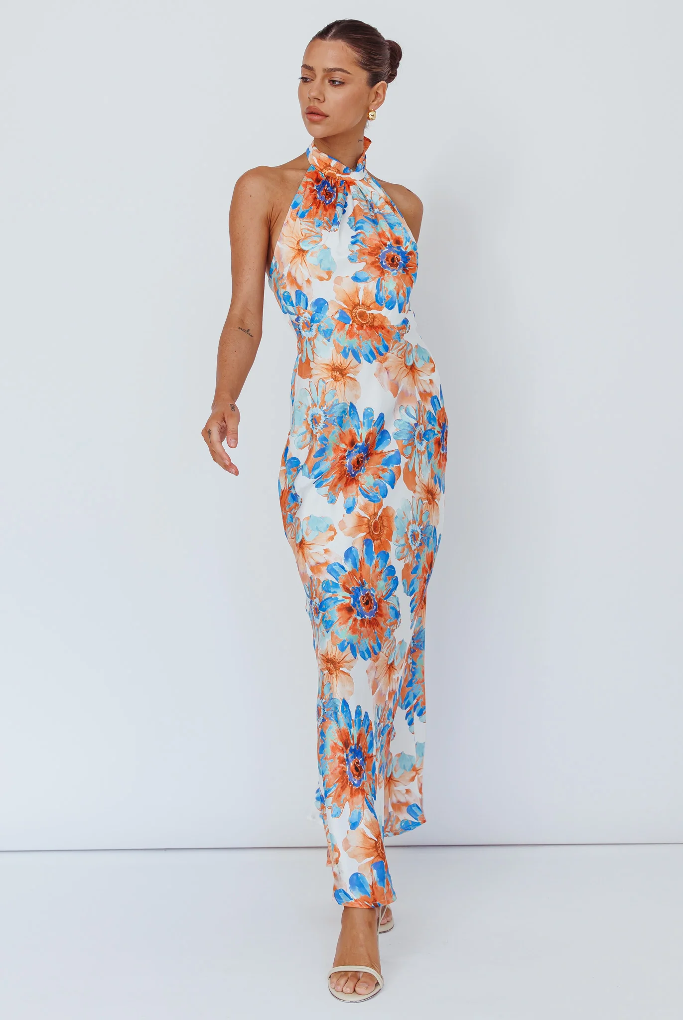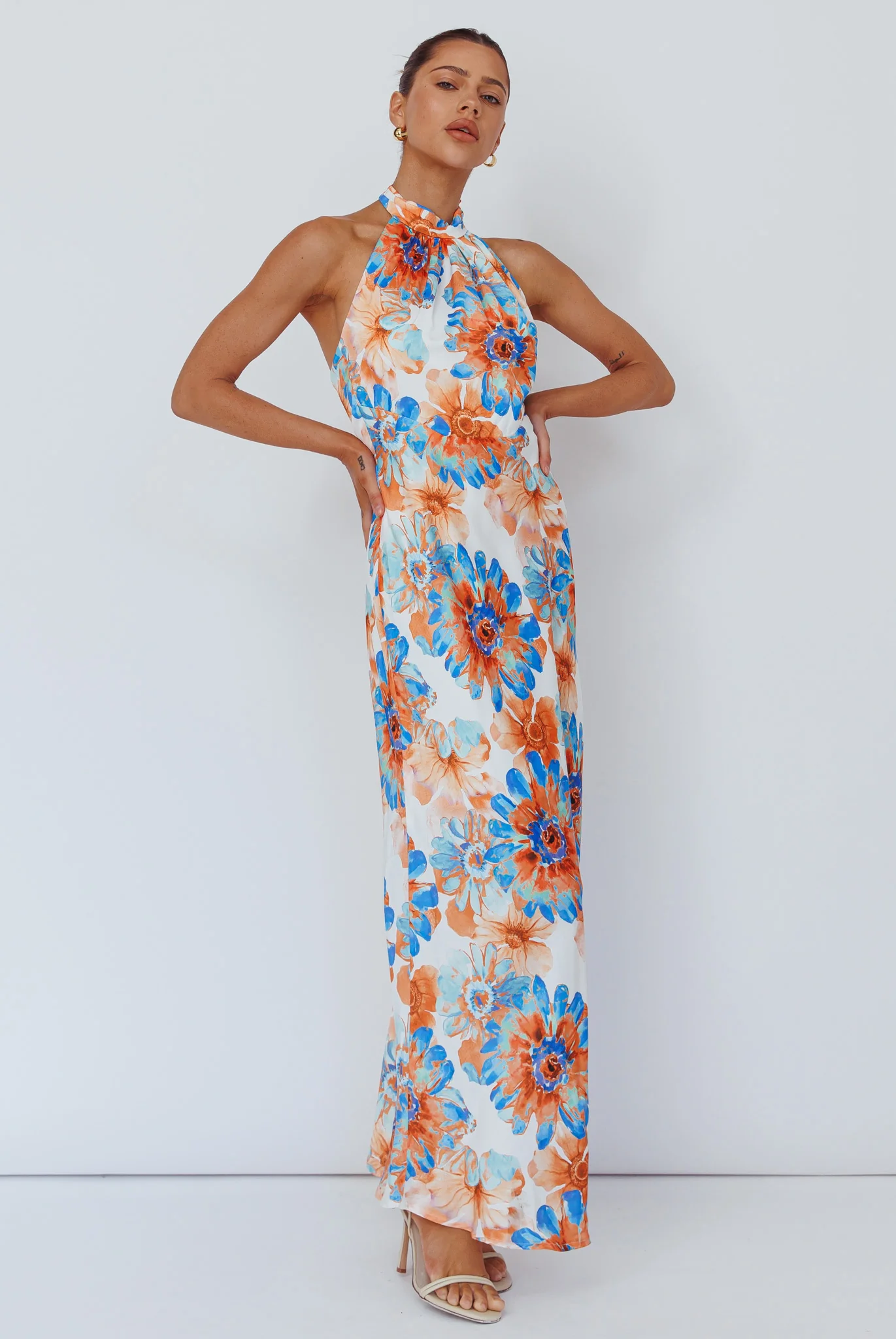 Shana Halterneck Maxi Dress Flowers Blue