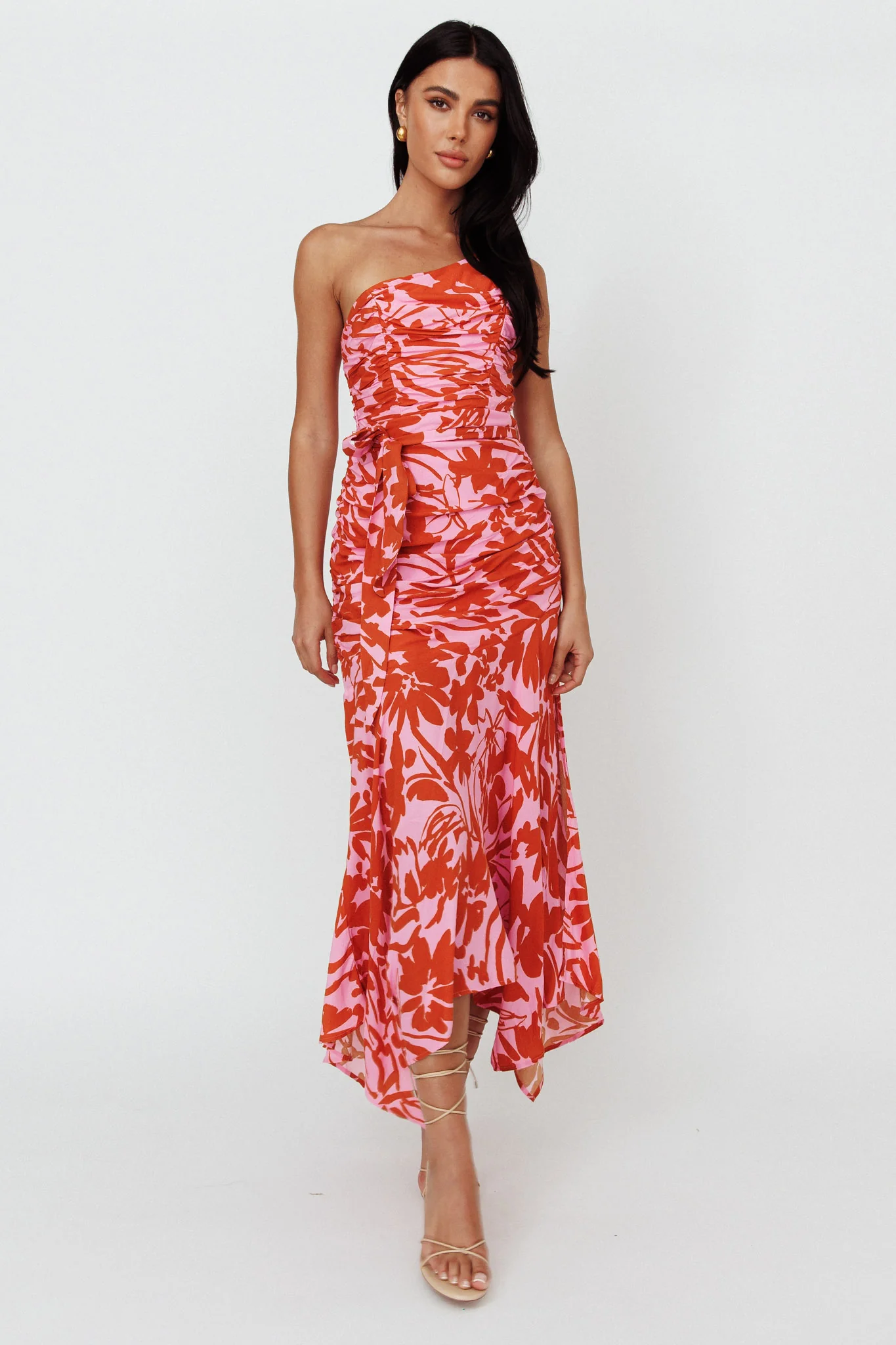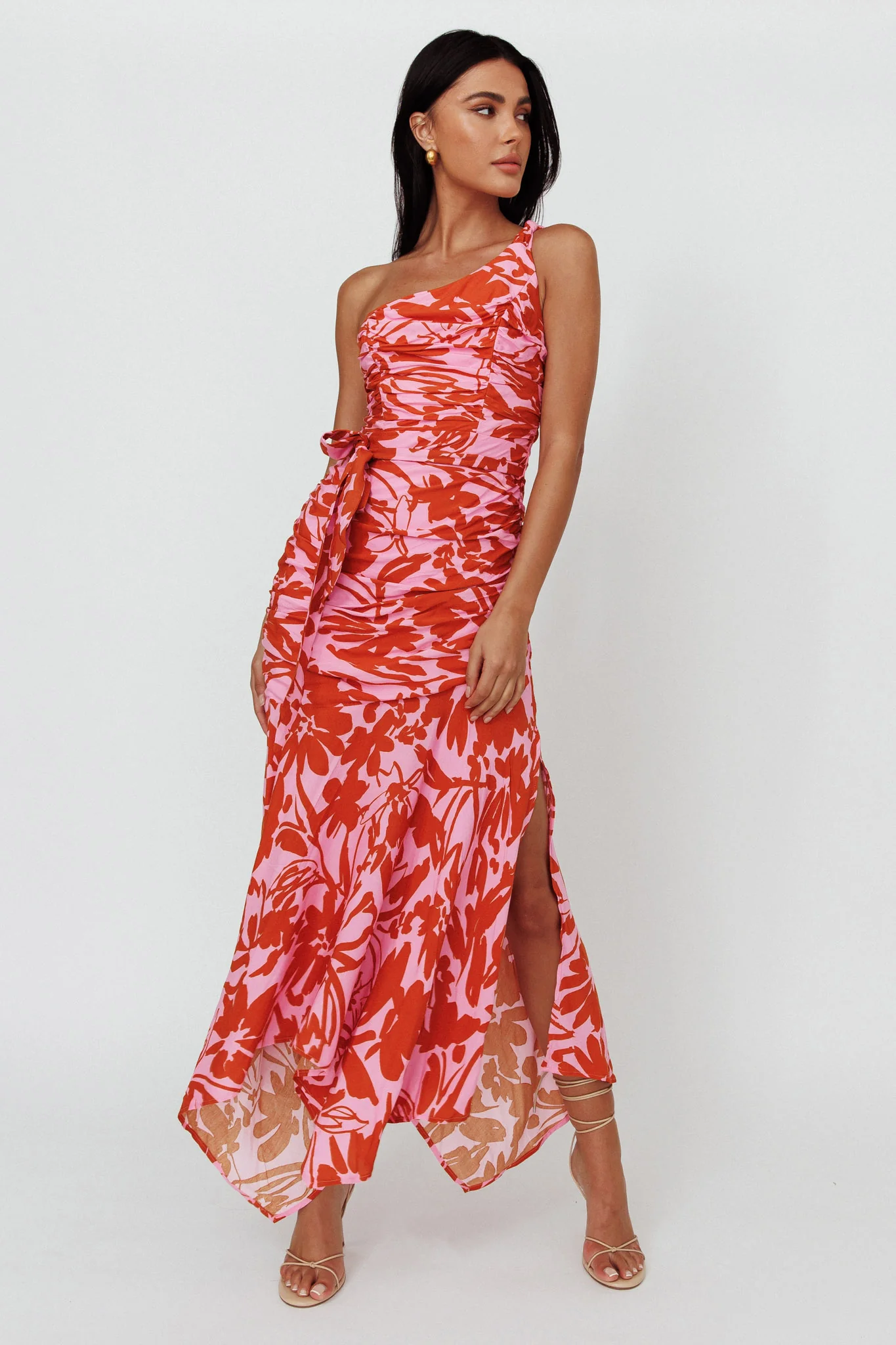 Chandler One-Shoulder Ruched Midi Dress Lilac