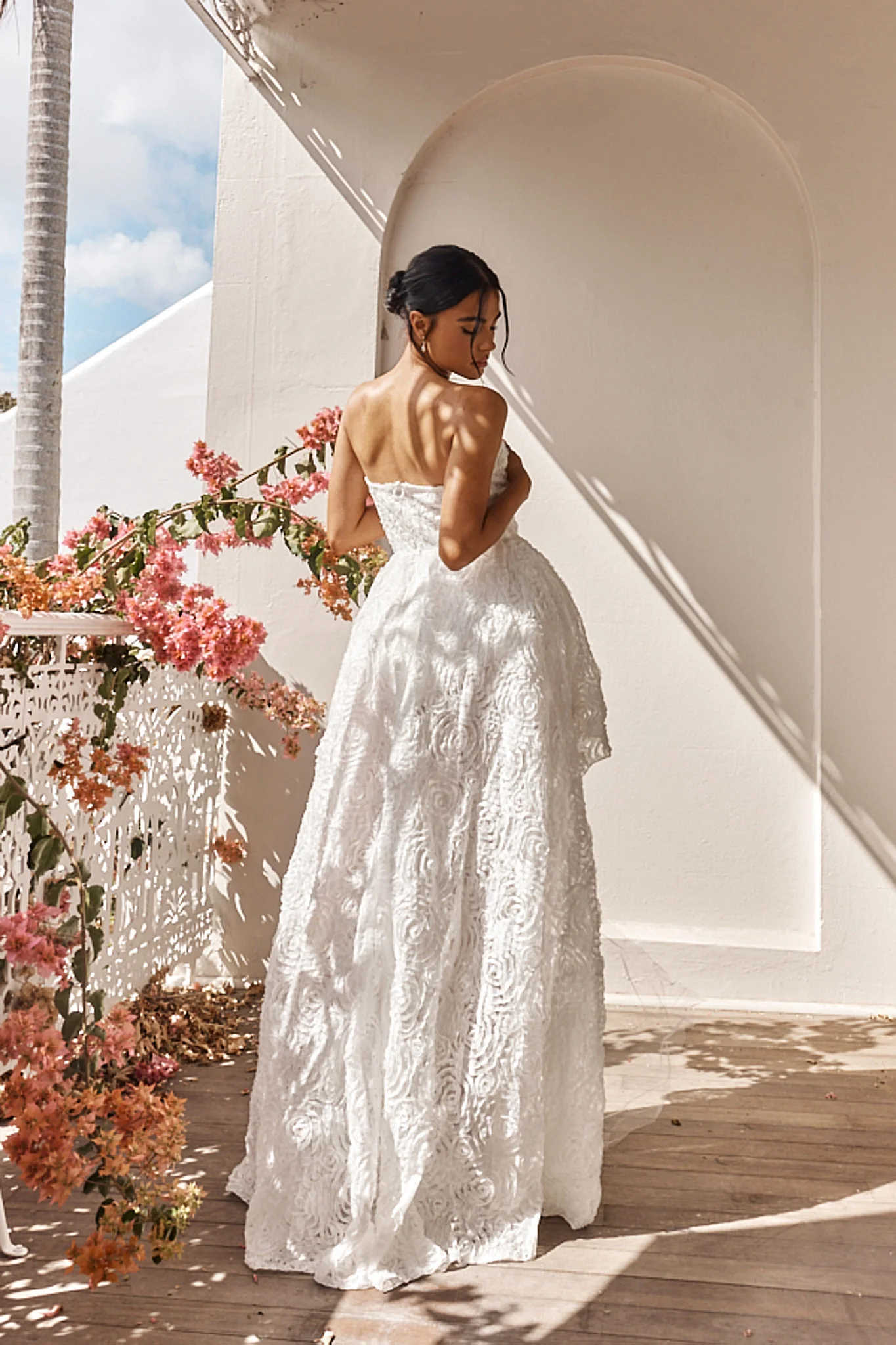 Delphina Strapless Bow Back Lace Dress Ivory