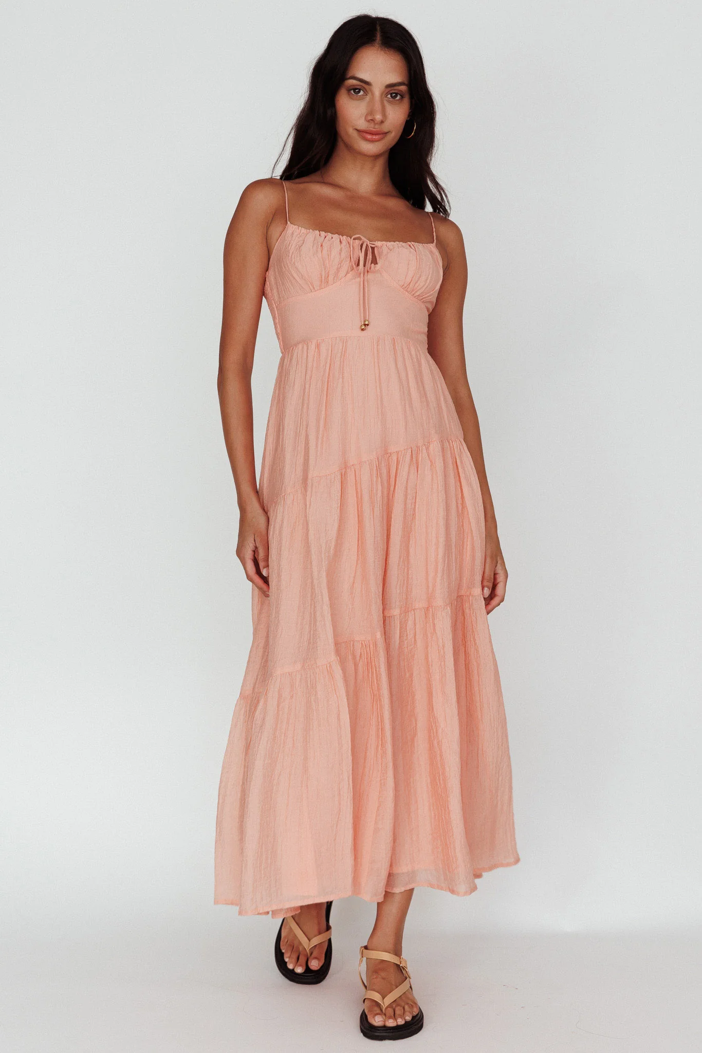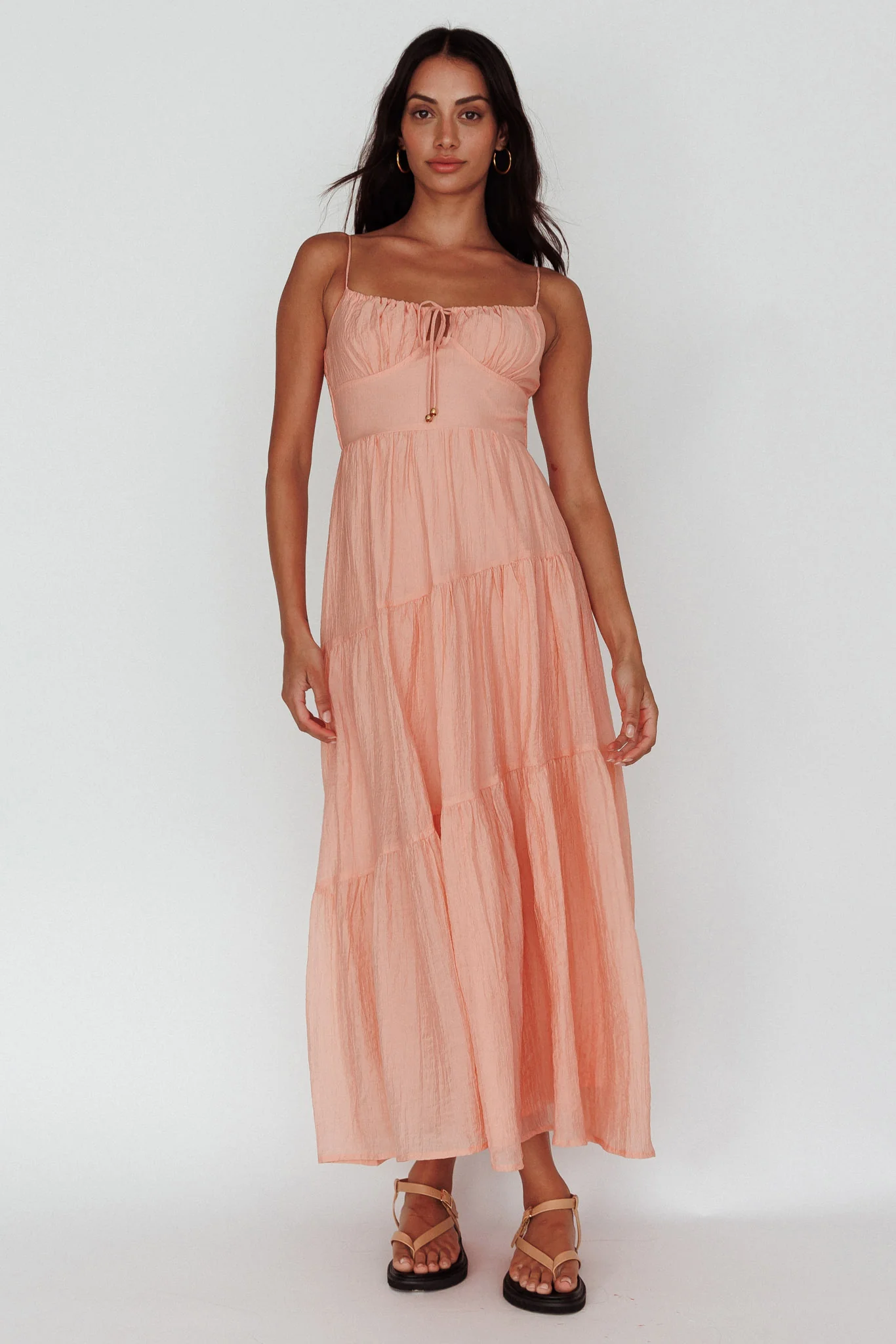 Doe Tie Bust Maxi Dress Apricot