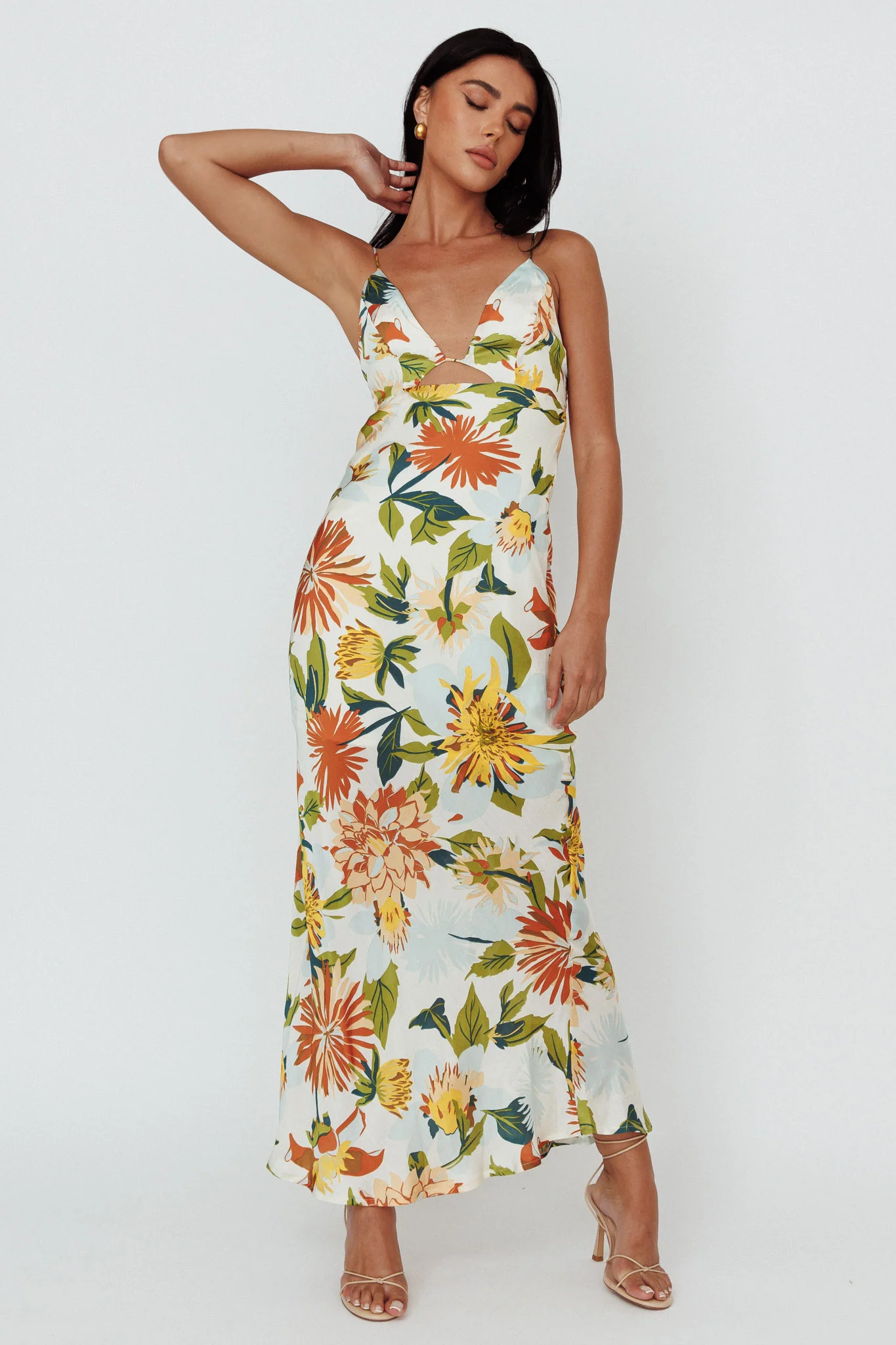 Dance Again Cut-Out Back Maxi Dress Floral Green