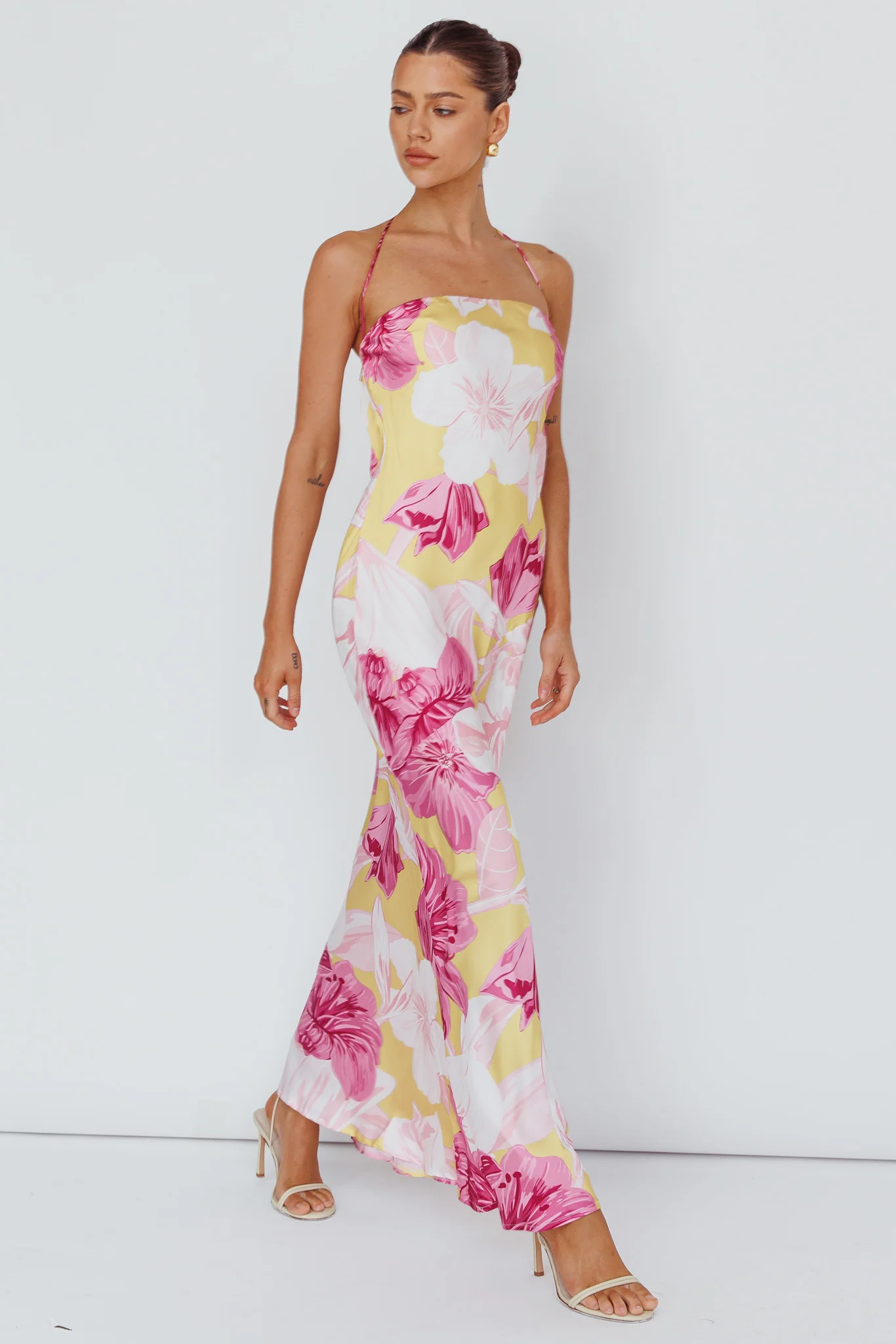 Jacquelynne Halter Cowl Back Maxi Dress Pink