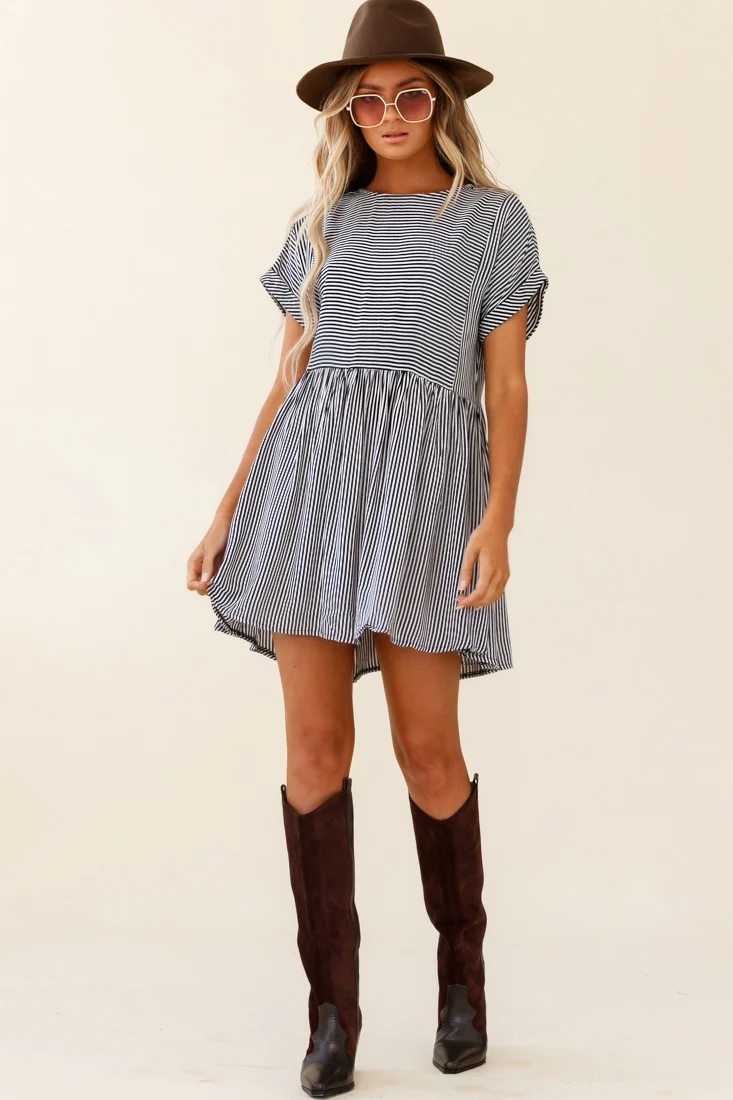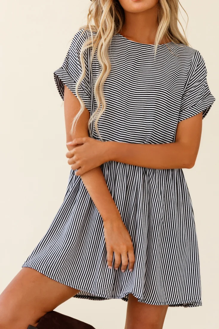 Cannes Striped Day Dress Black