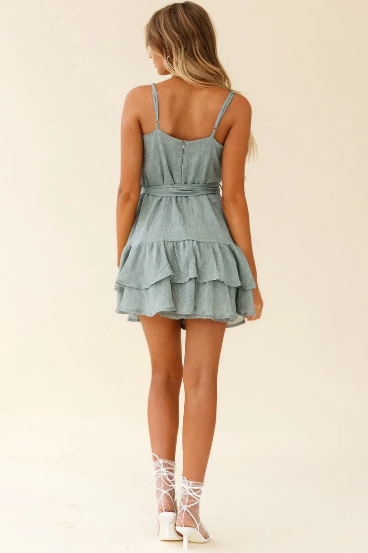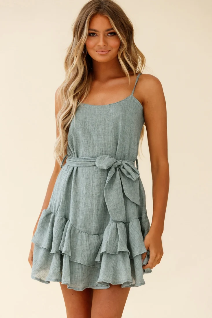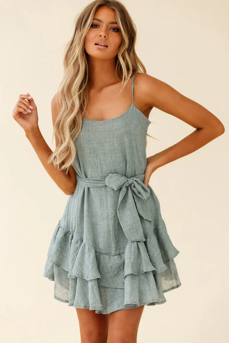 Wilshire Tiered Ruffle Hem Spaghetti Strap Dress Grey