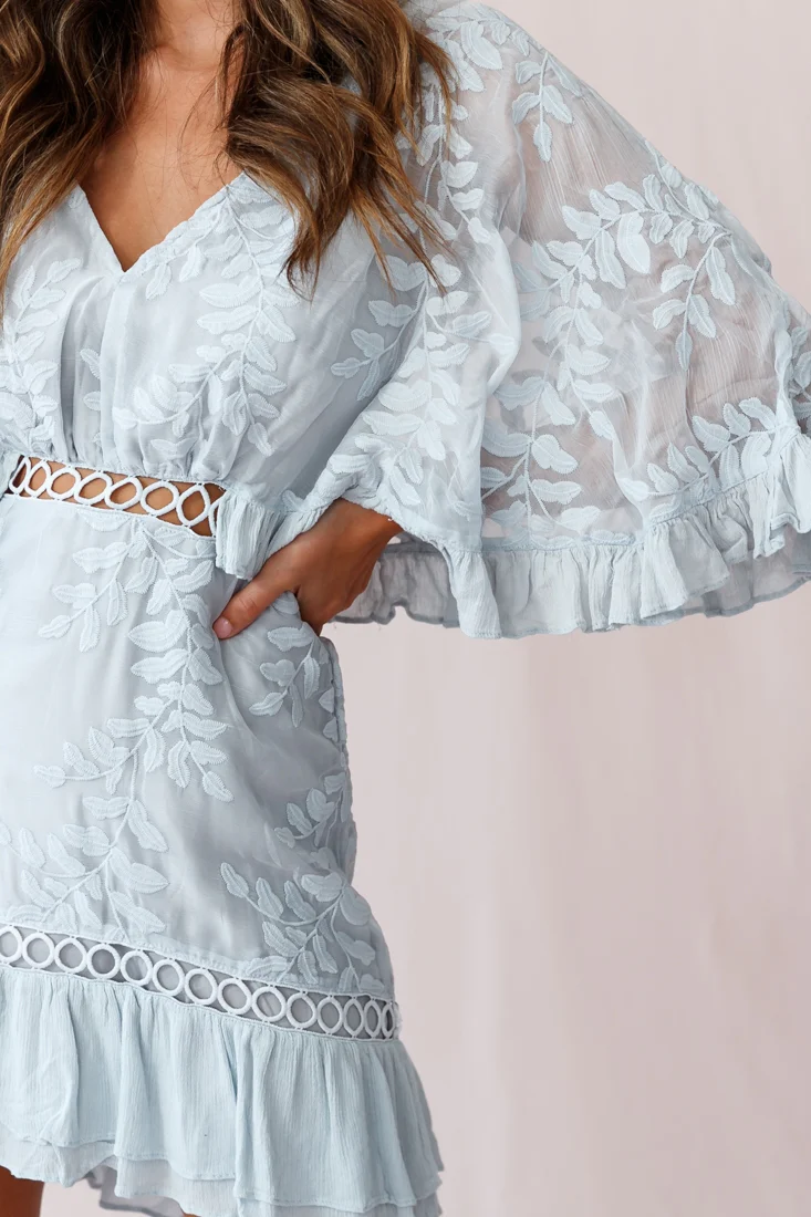 Caspar Leafy Embroidered Dress Baby Blue