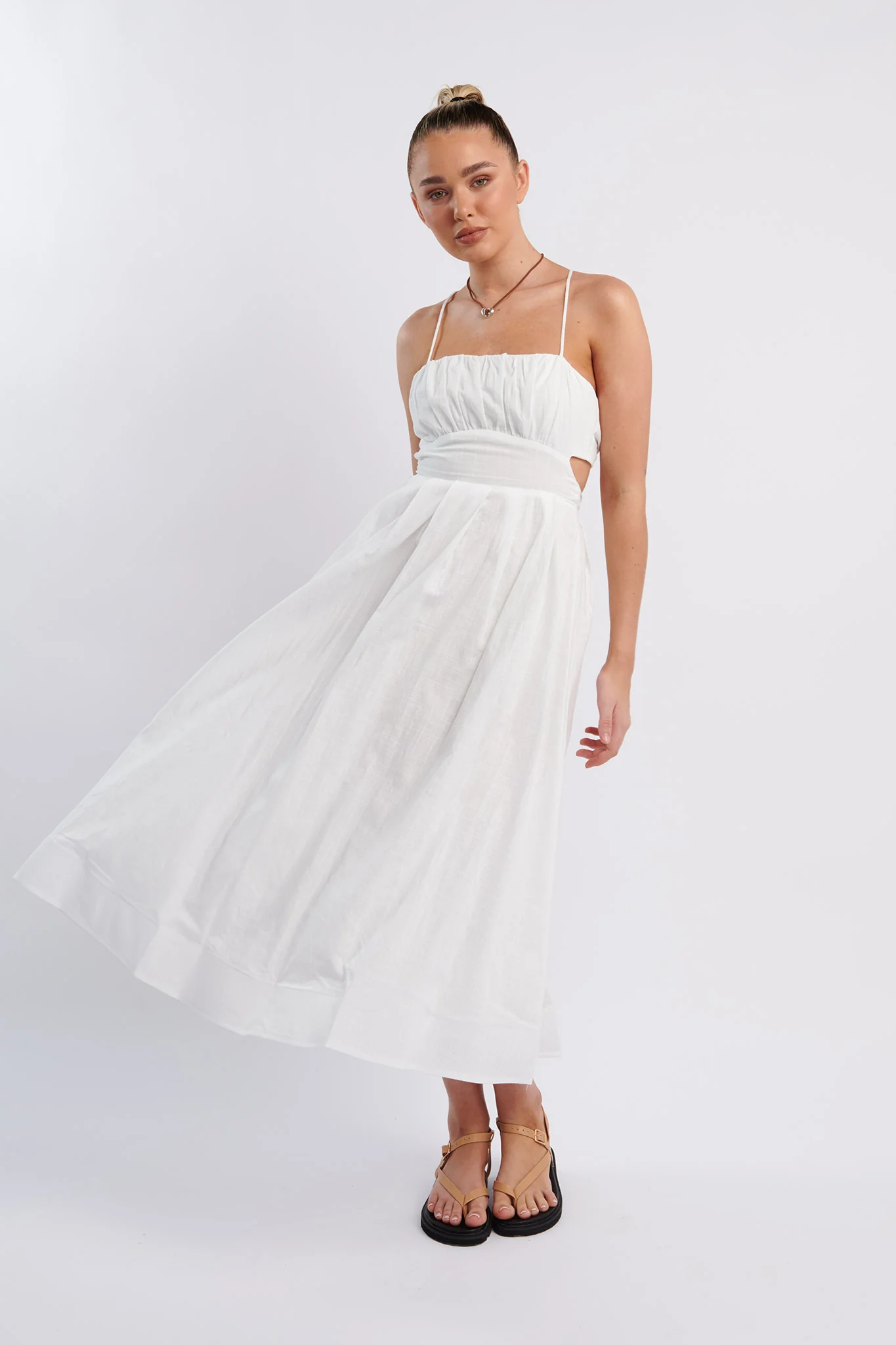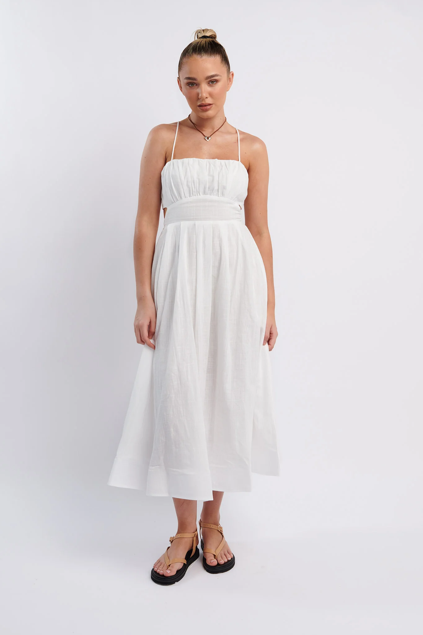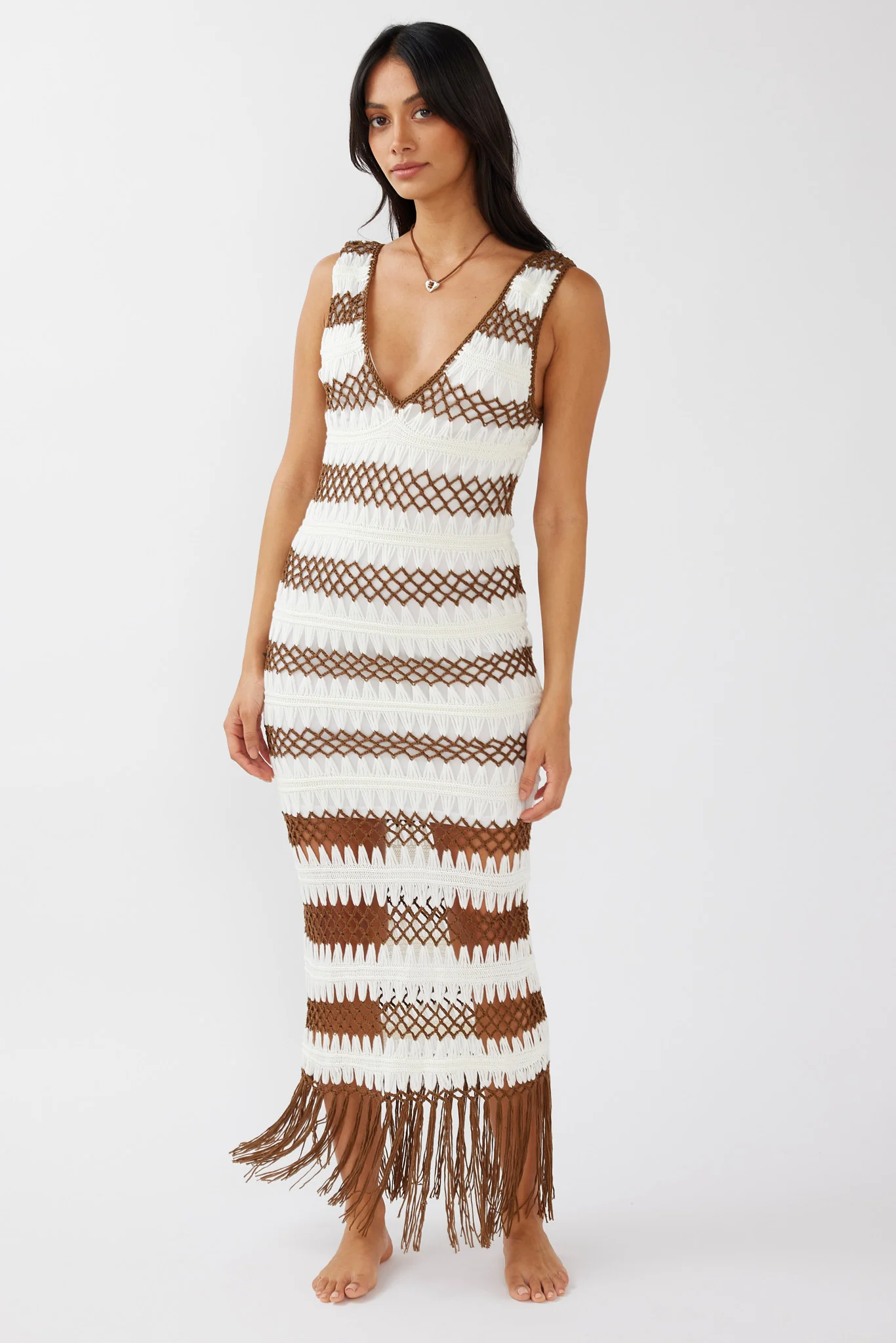 Ximena Tassel Hem Crochet Midi Dress White/Mocha