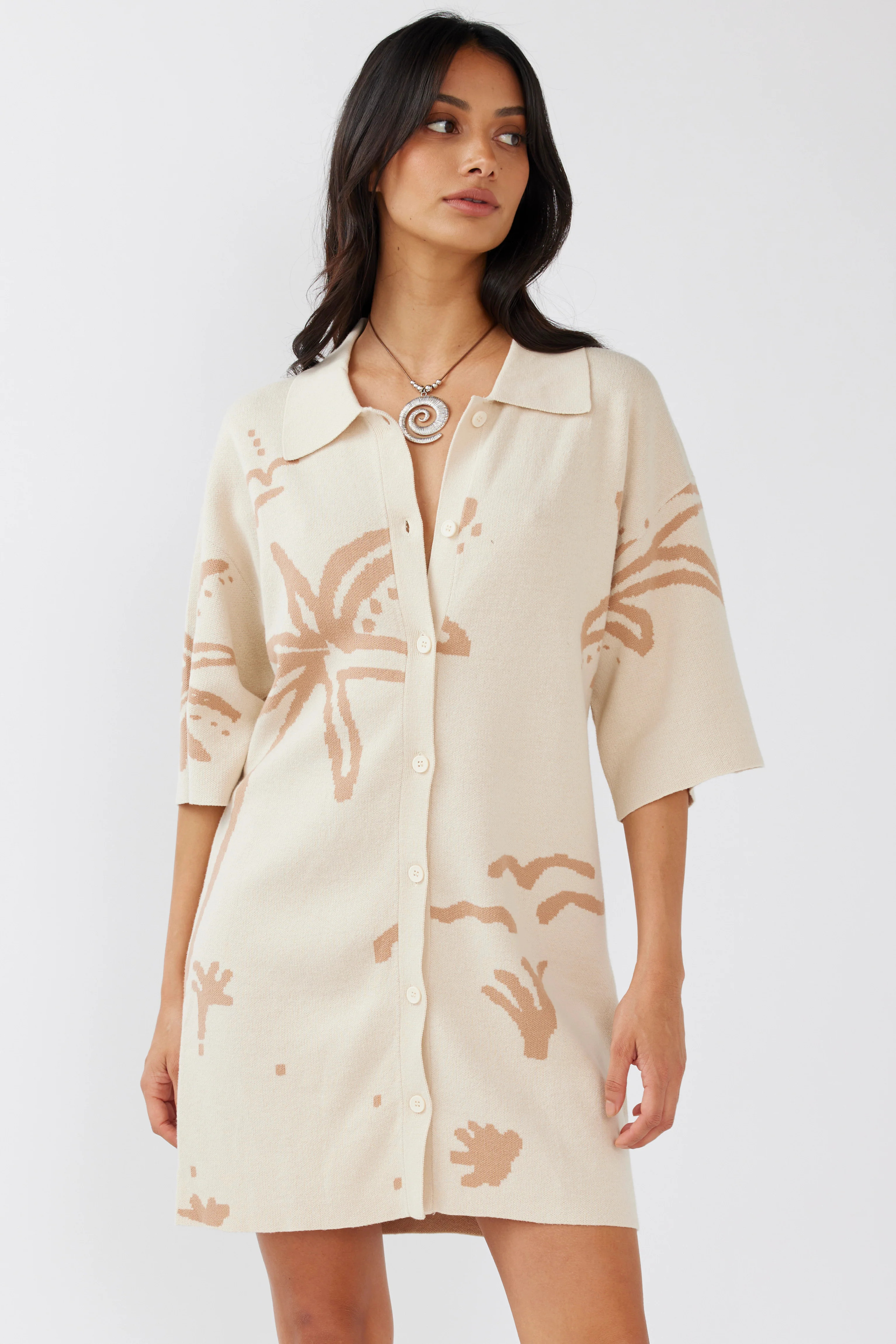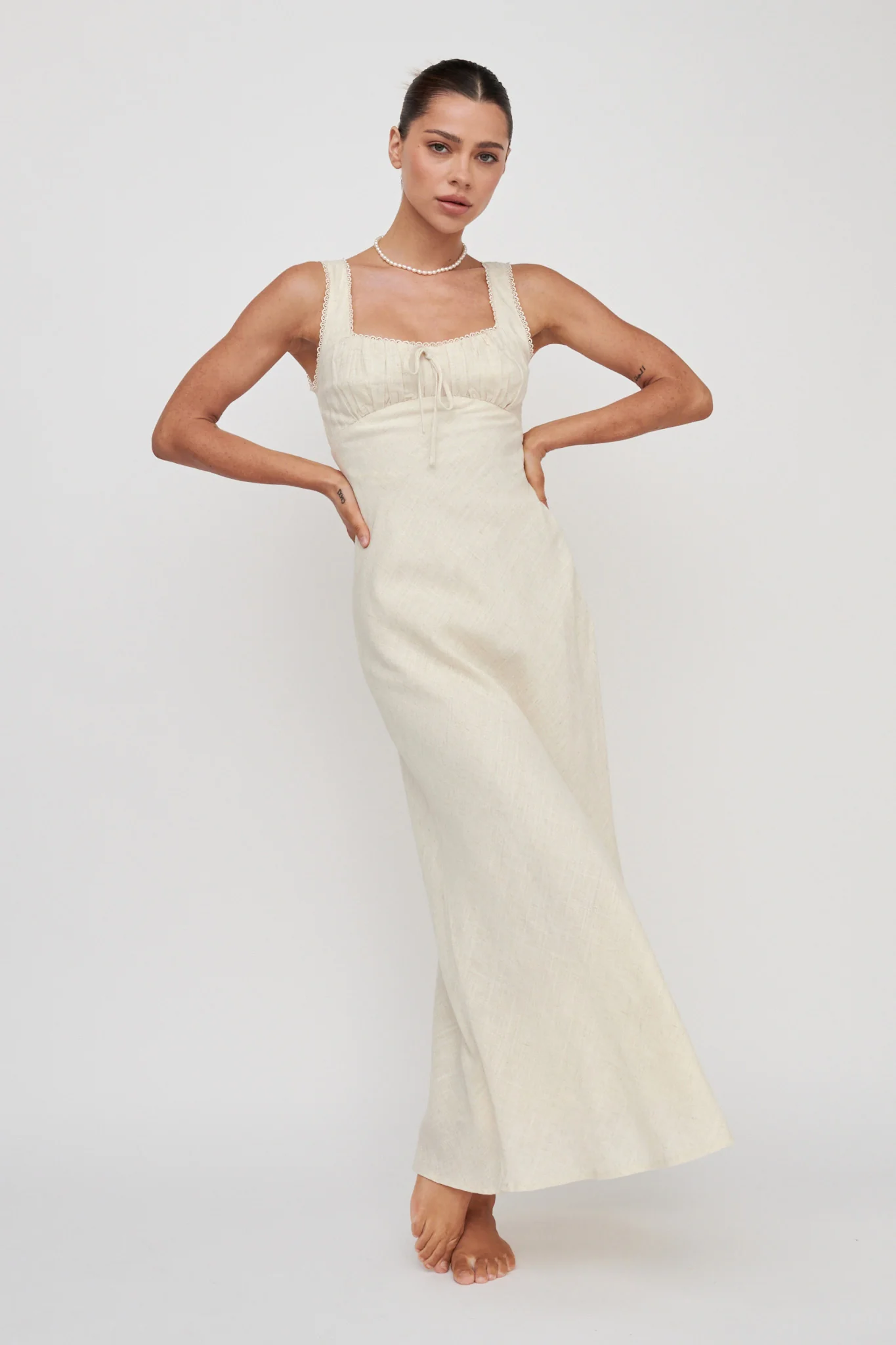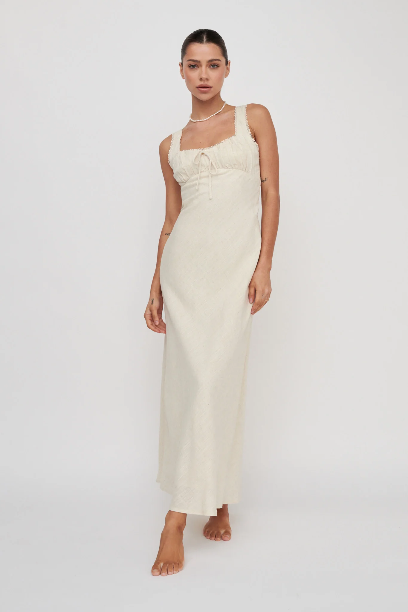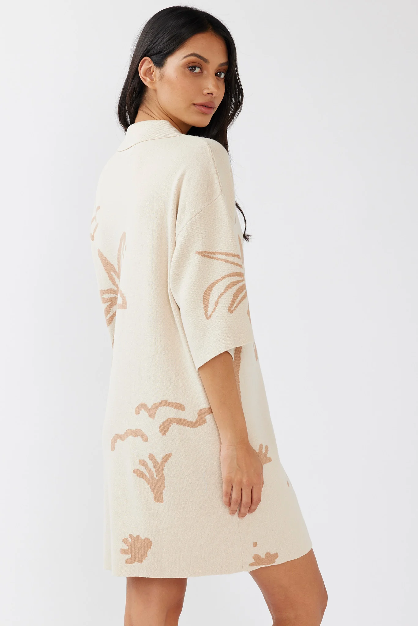 Ximena Tassel Hem Crochet Midi Dress White/Mocha