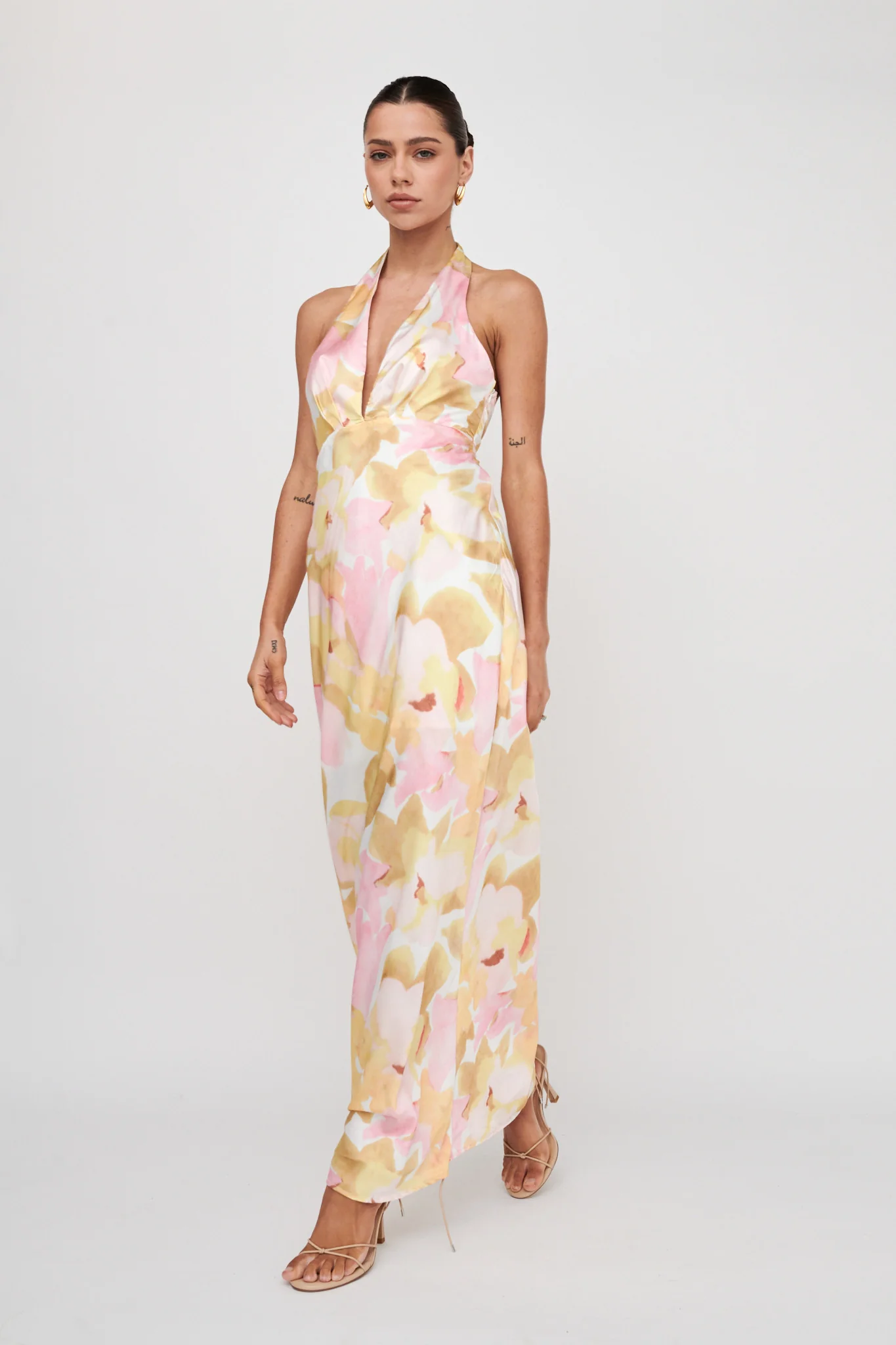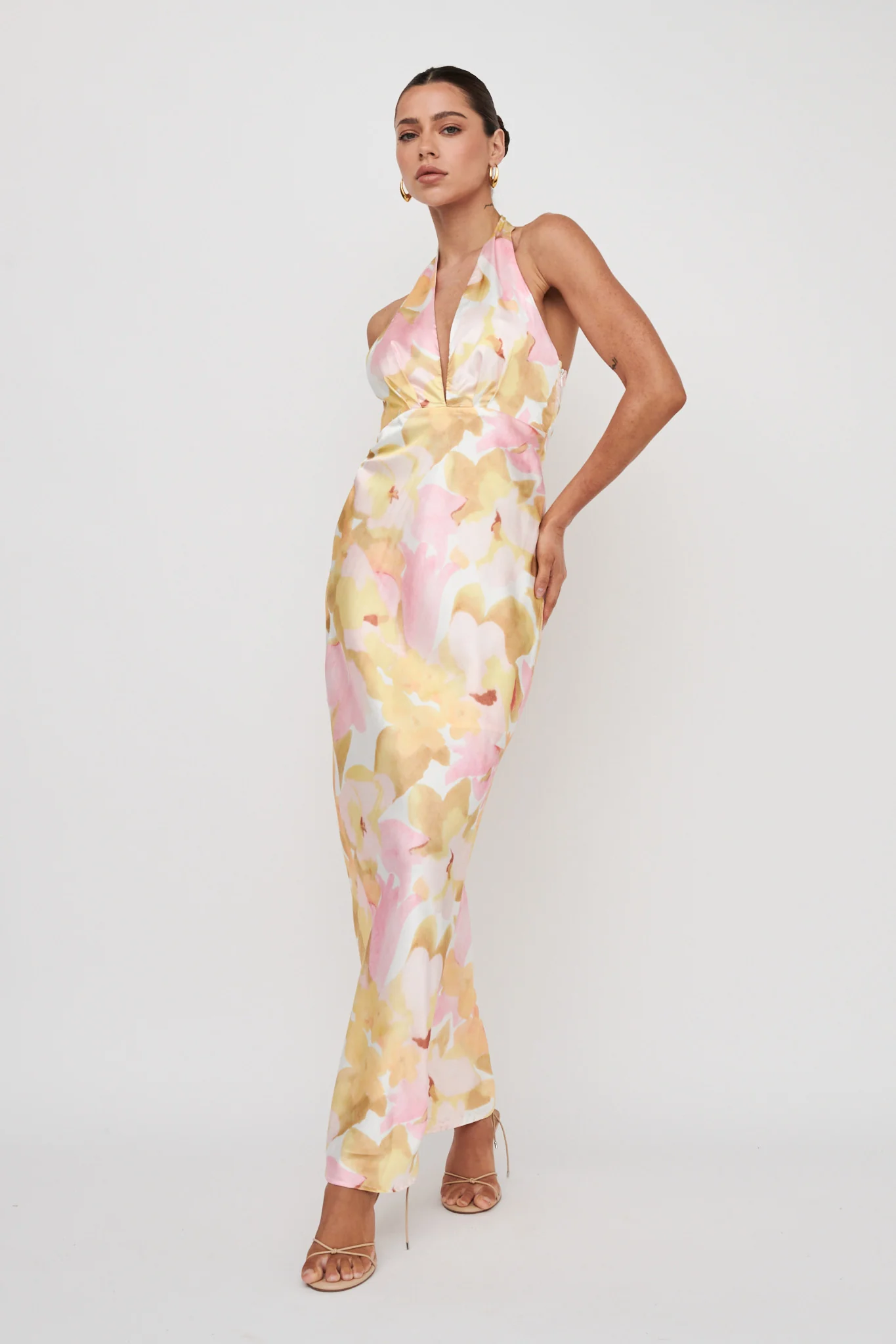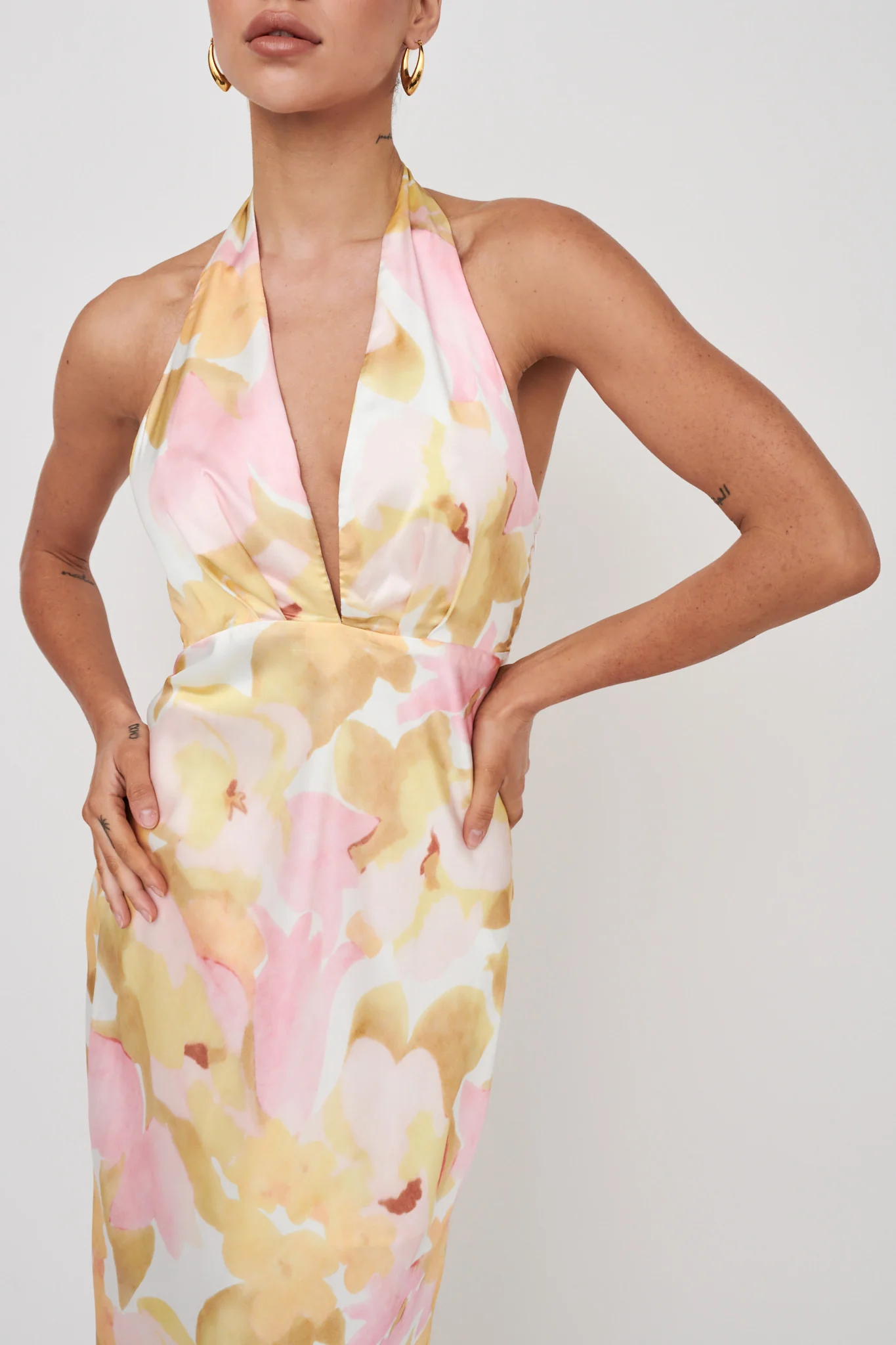 Of Your Dreams Plunging Halter Dress Floral Pink