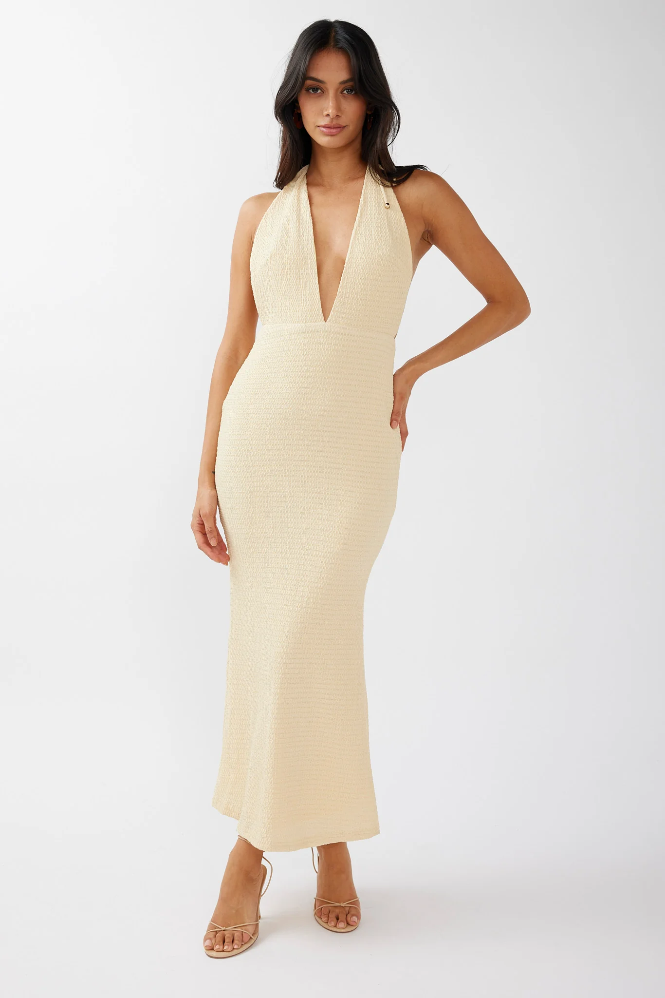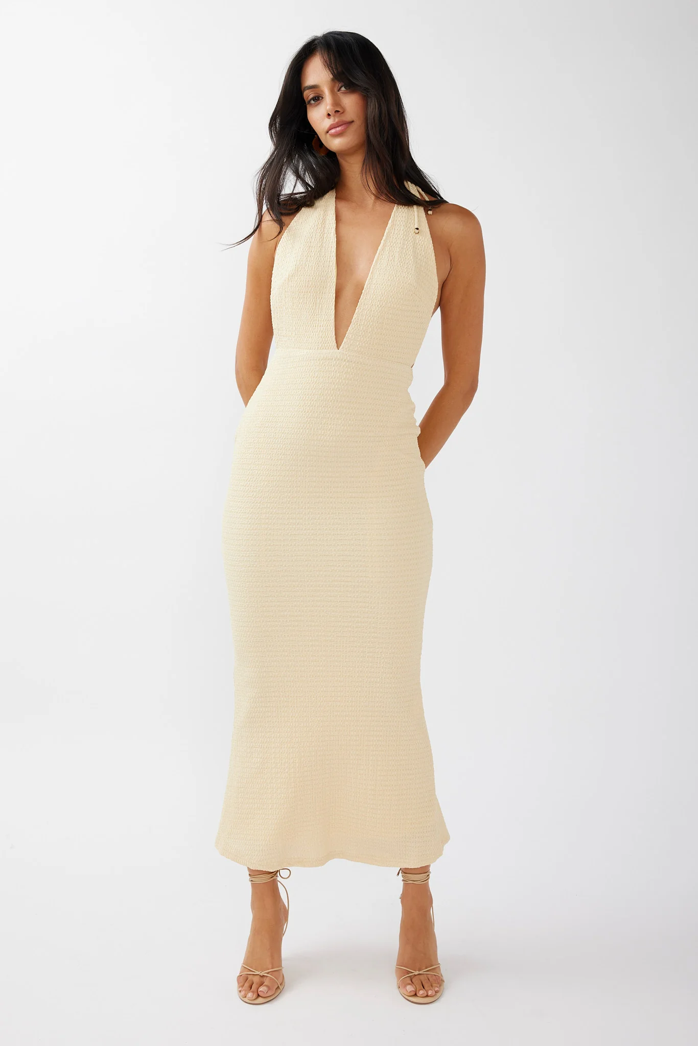 Cyndi Open Back Halterneck Mini Dress Lemon