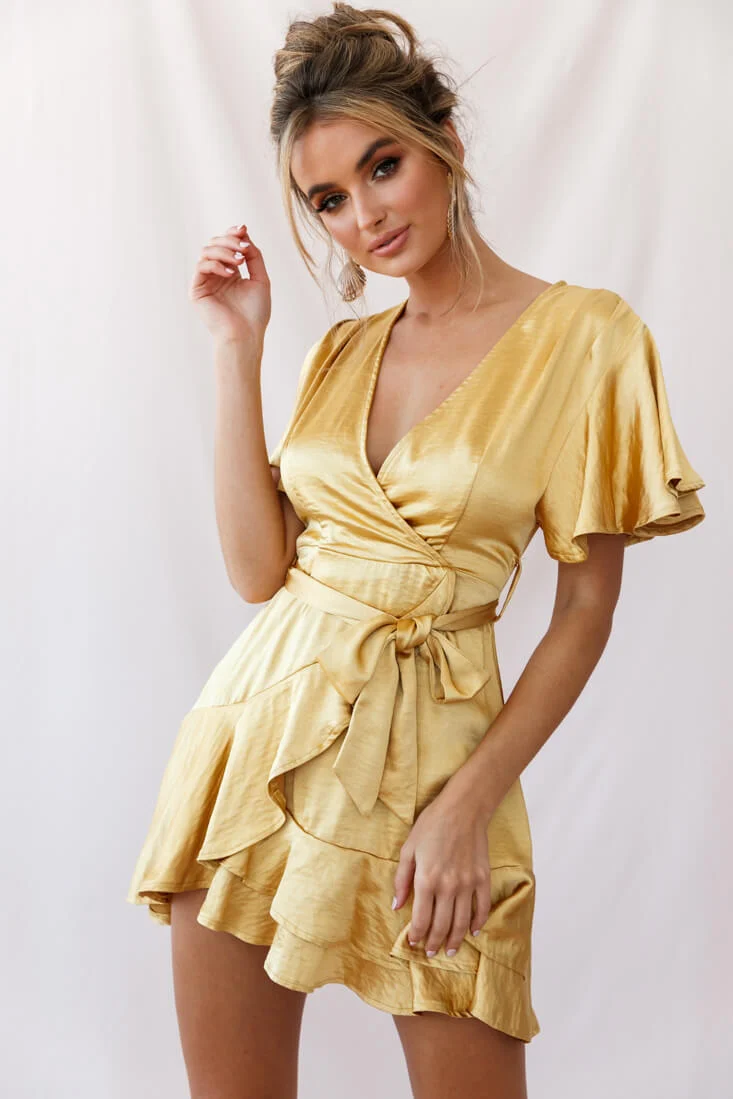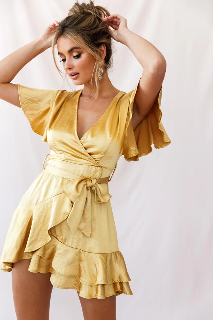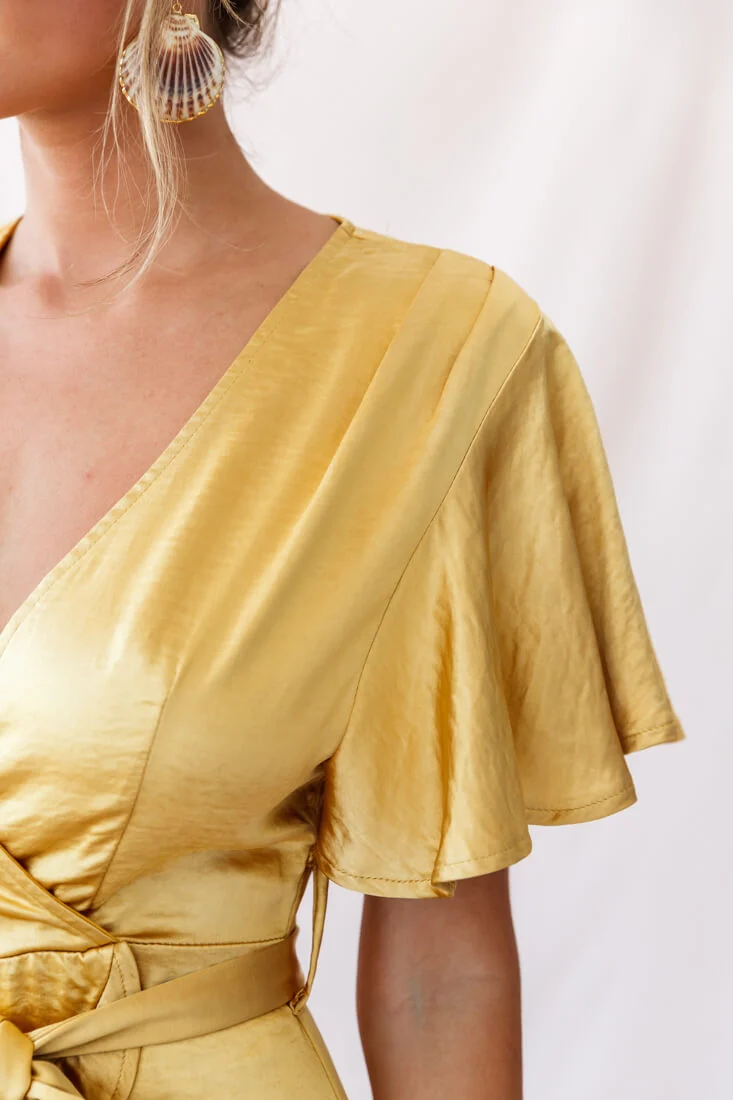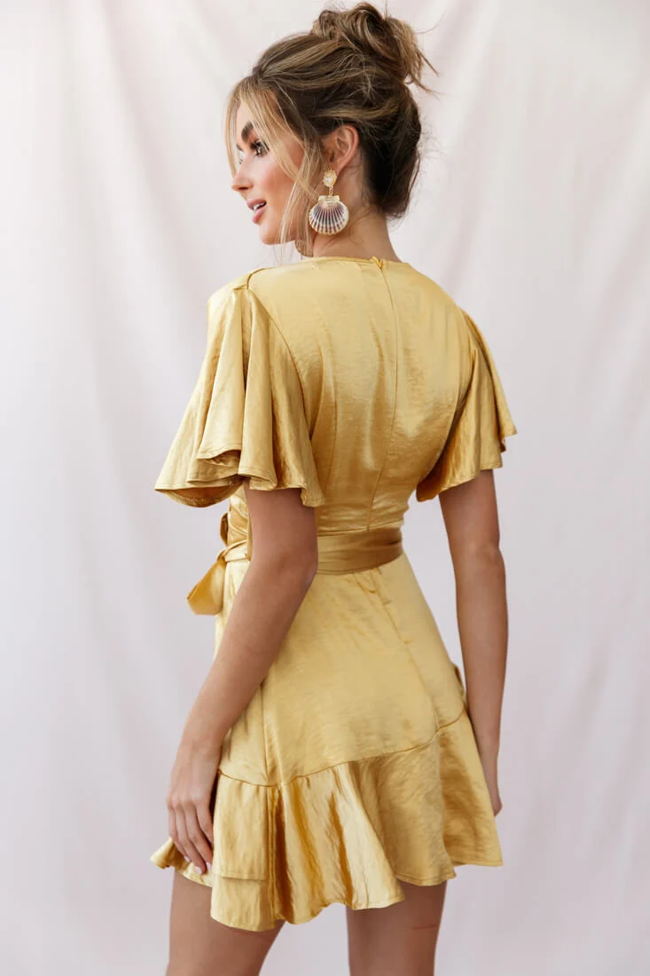 Cami Angel Sleeve Faux Wrap Dress Mustard