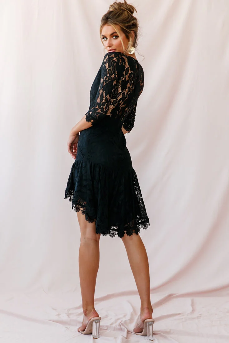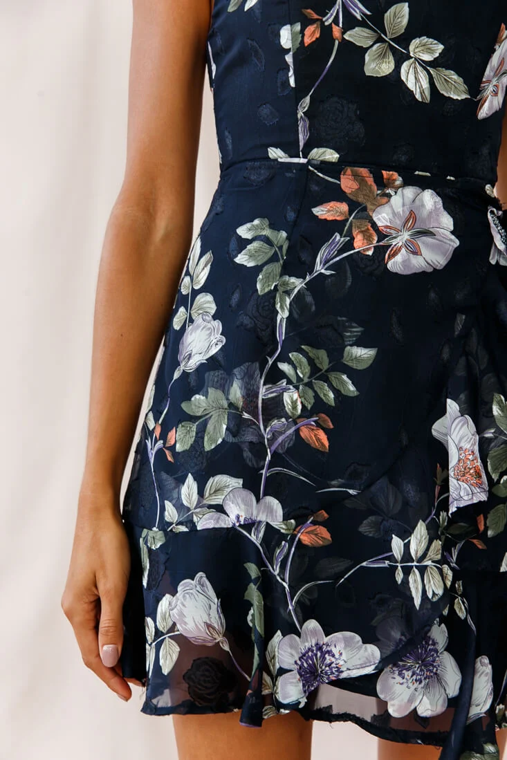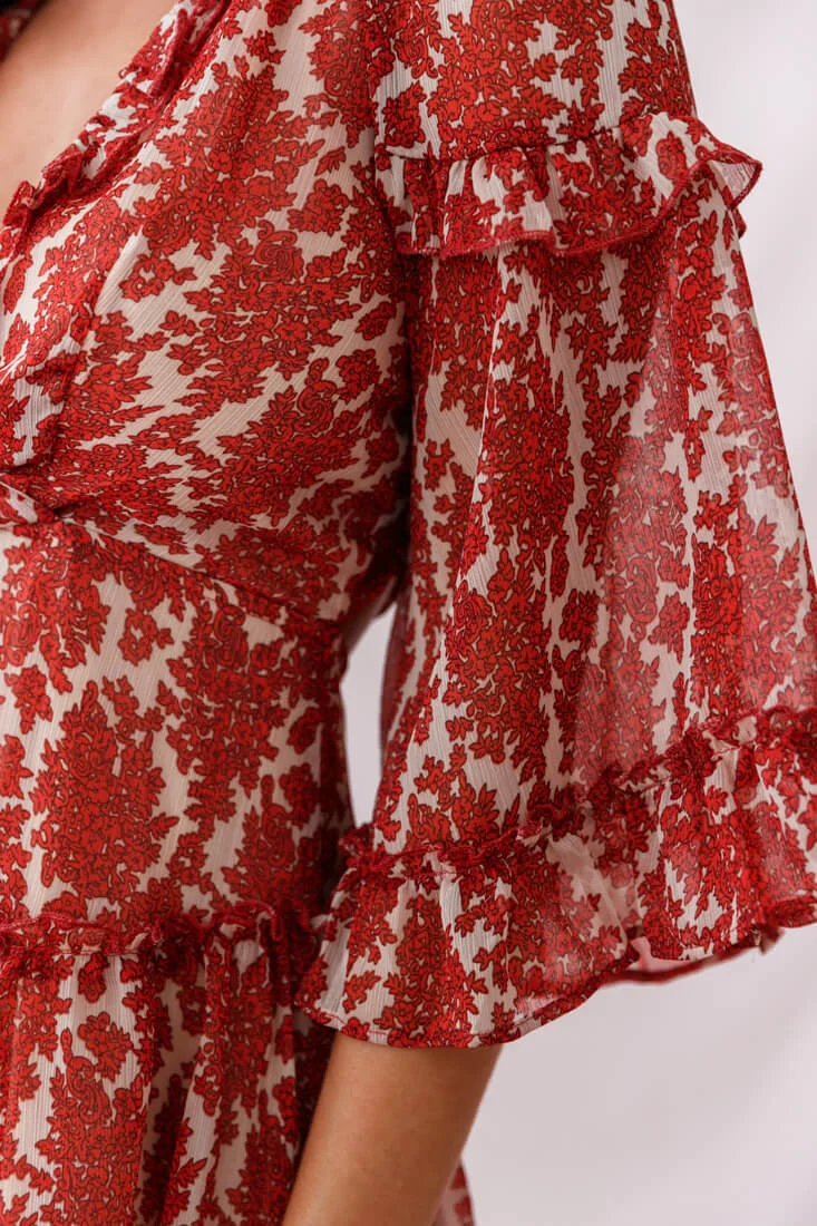 Kerry Layered Angel Sleeve Dress Black/Orange Flower