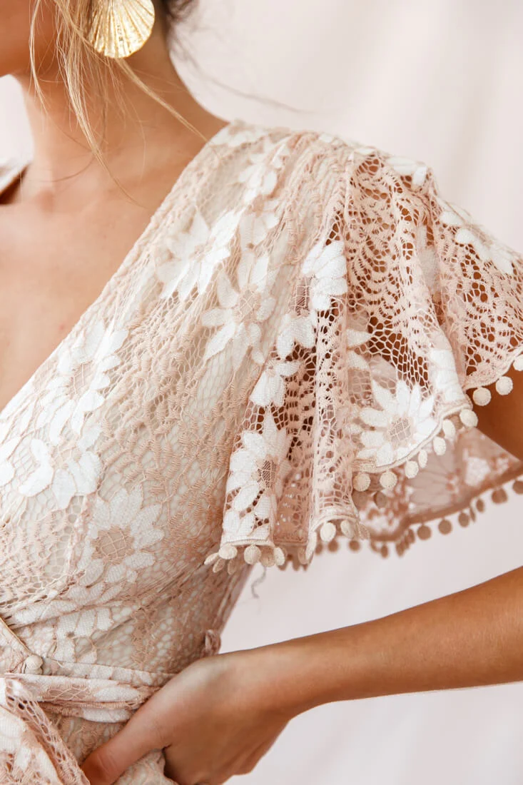Cami Angel Sleeve Faux Wrap Dress Nude