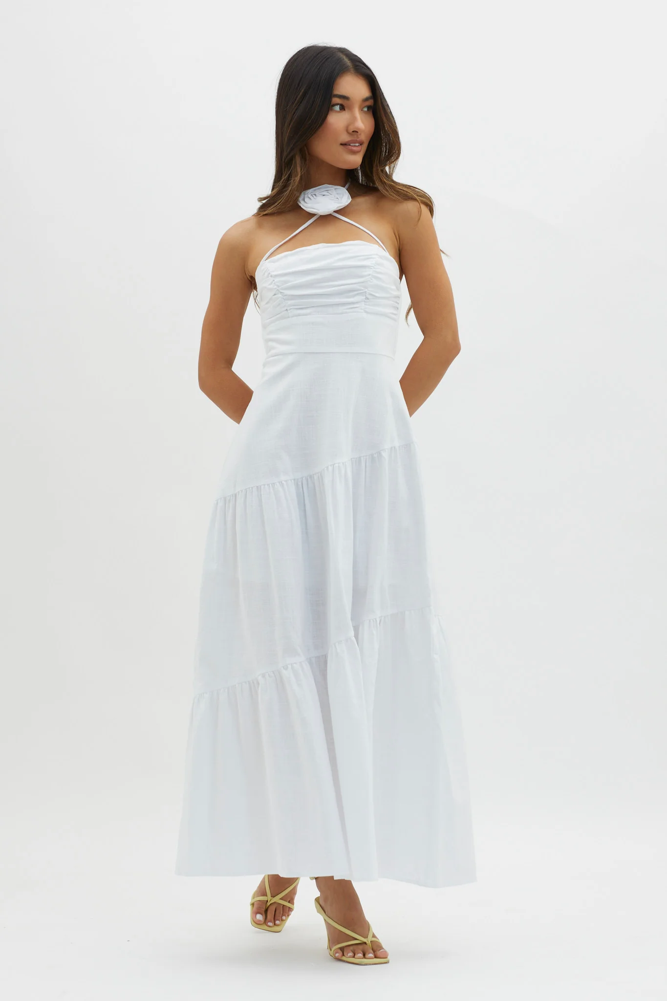 Bondi Rose Decoration Maxi Dress White