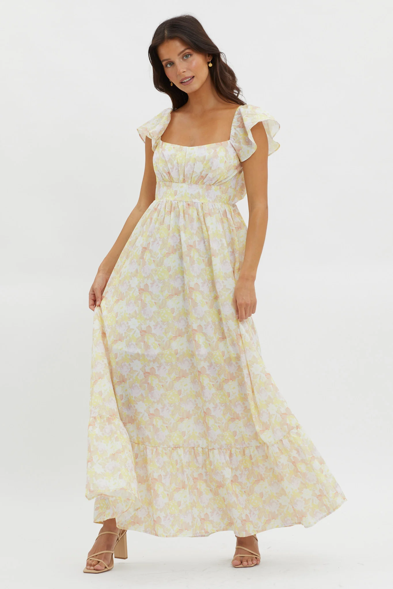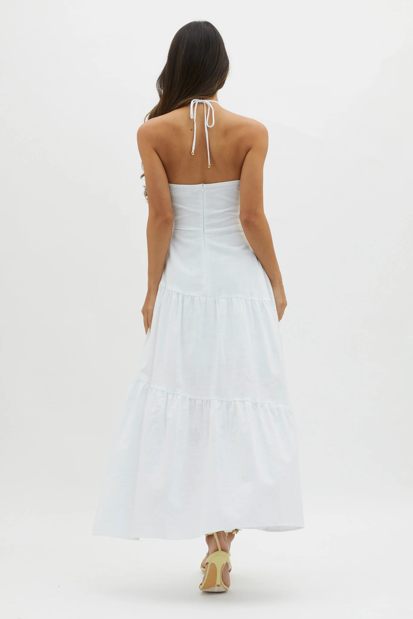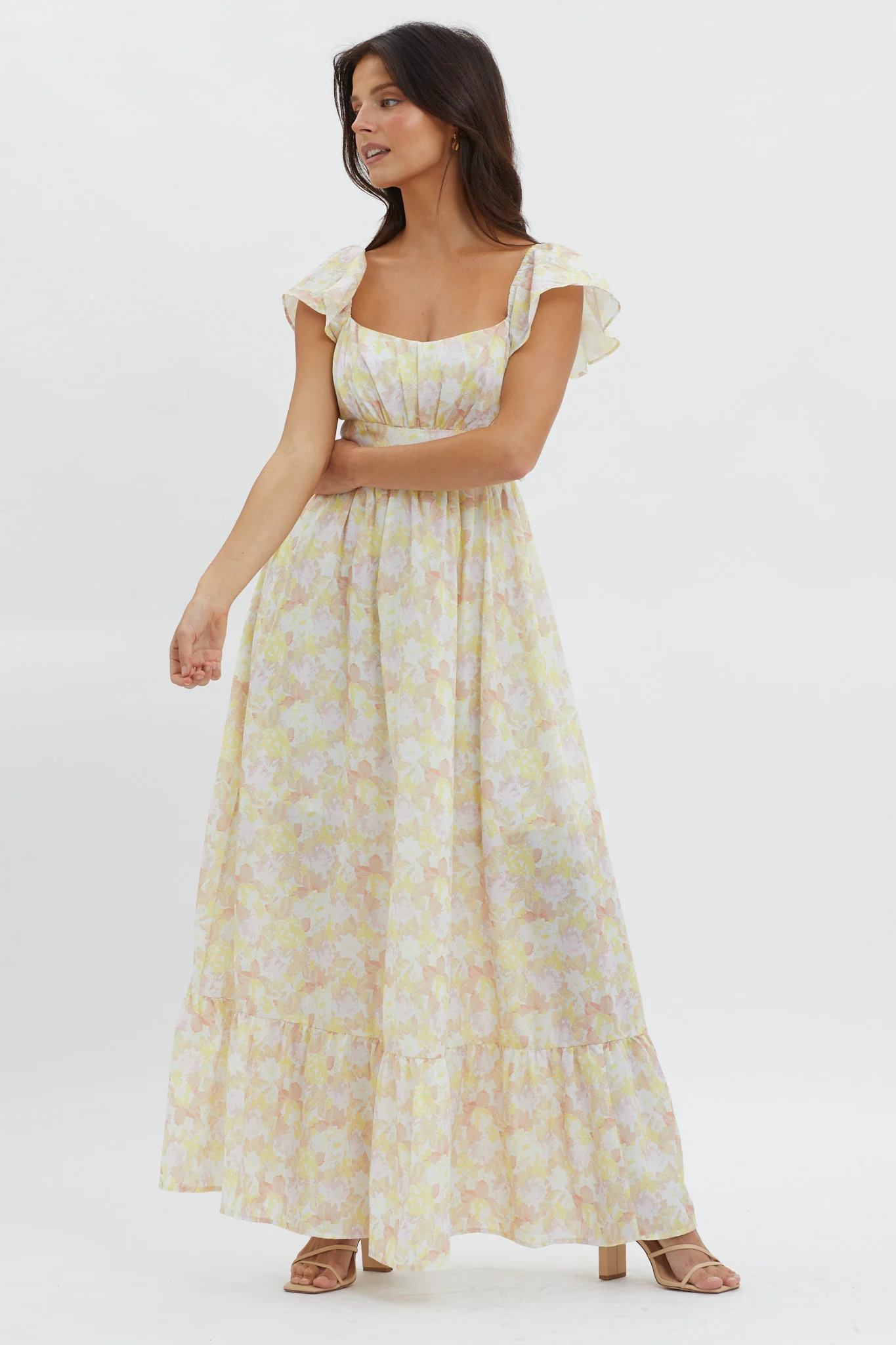 Future Awaits Lace-Up Back Maxi Dress Yellow