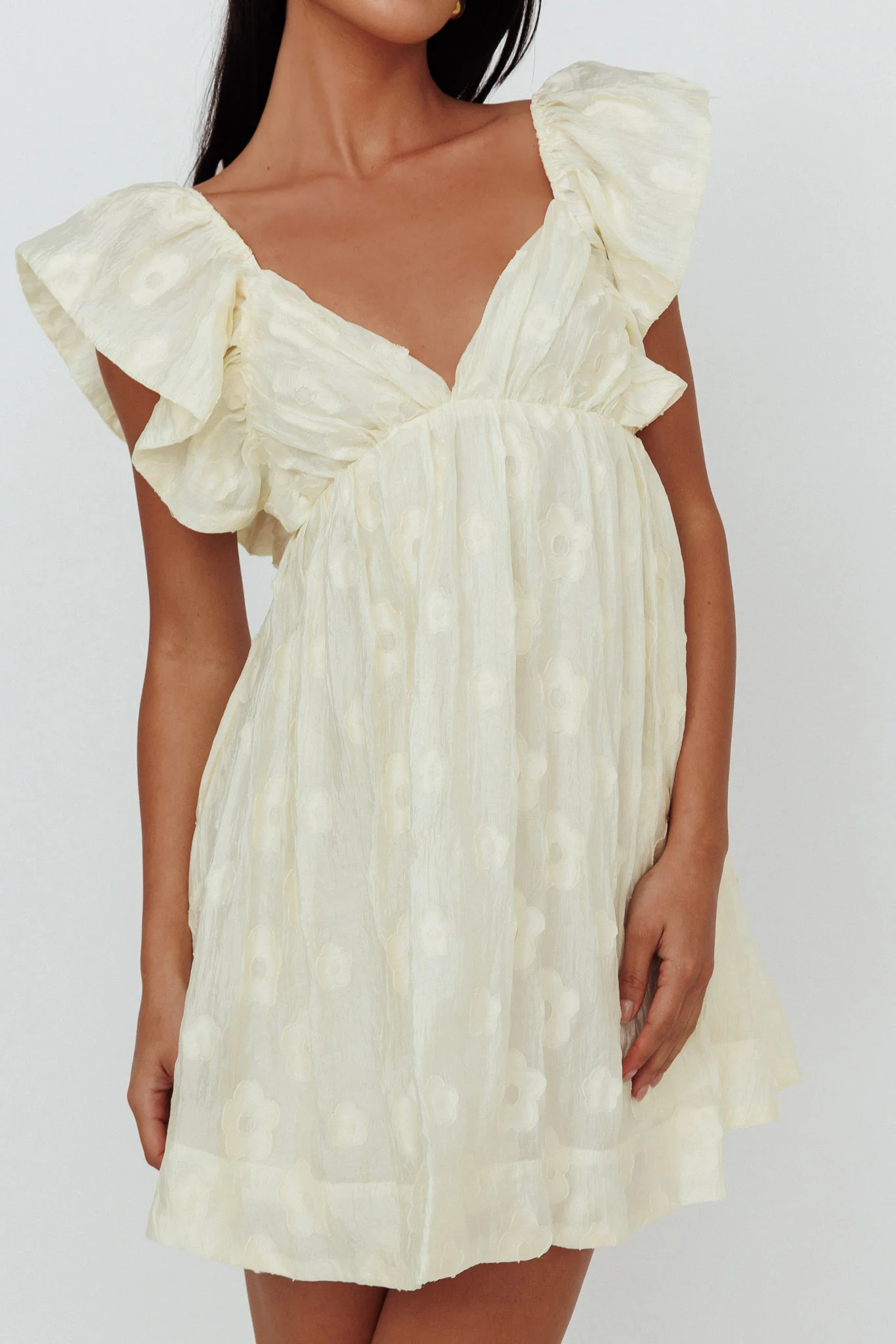 Melrose Place Floral Textured Frill Dress Lemon