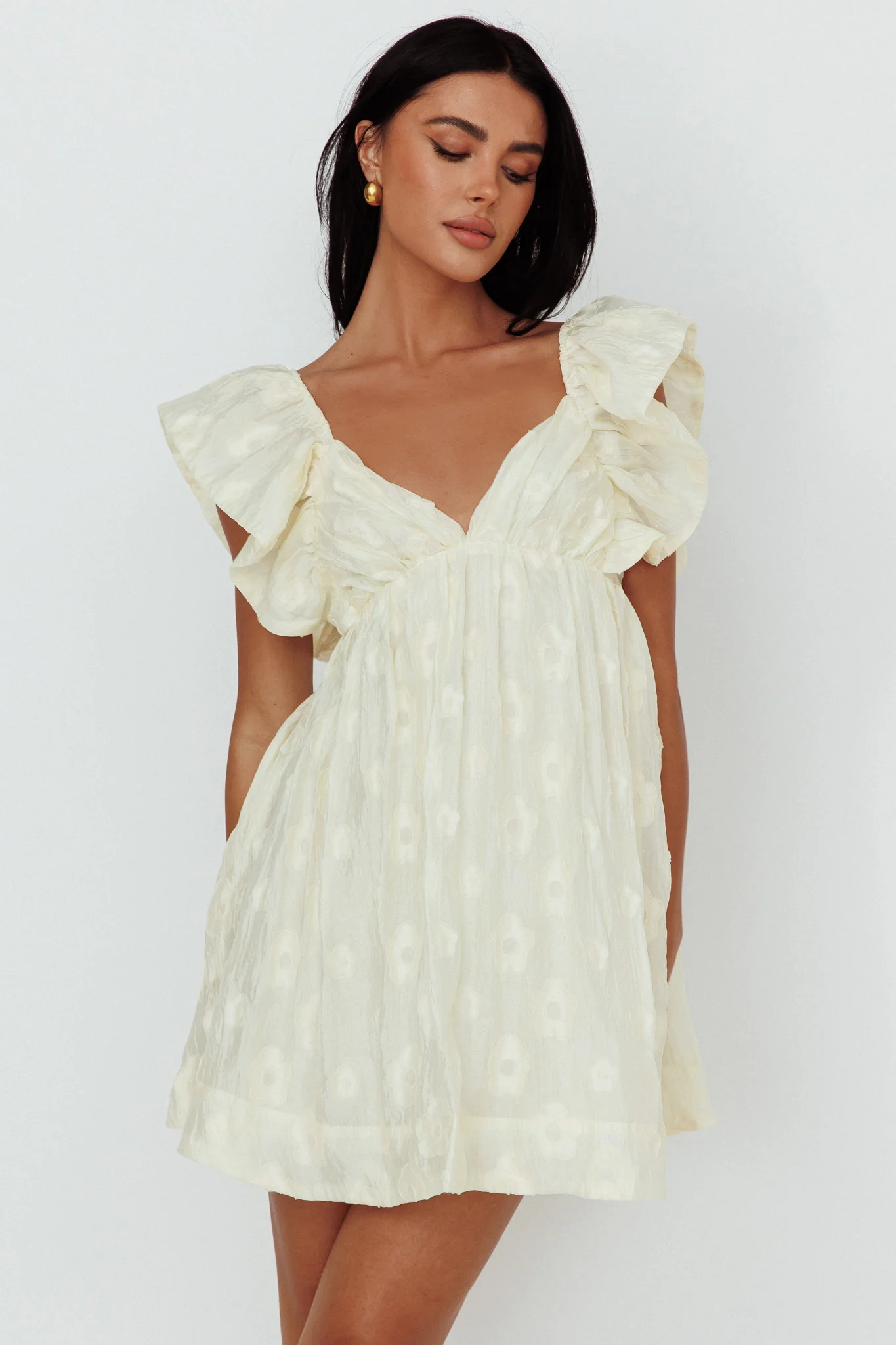 L'amour Toujours Frill Accent Mini Dress White