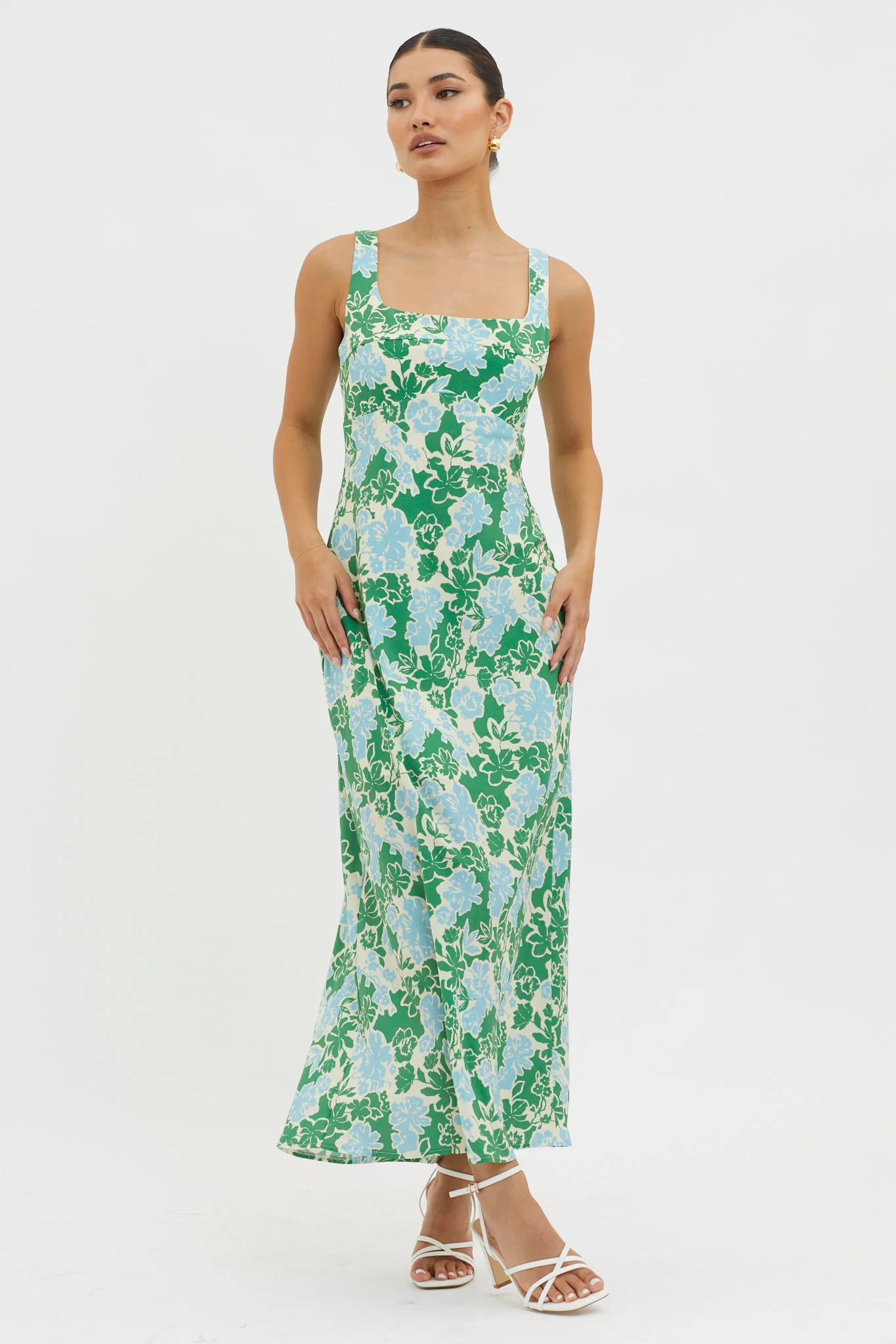 Jannet Keyhole Back Maxi Dress Floral Apricot