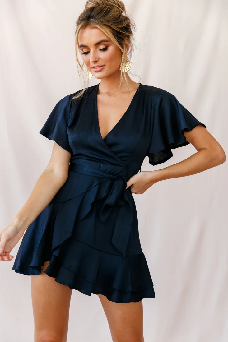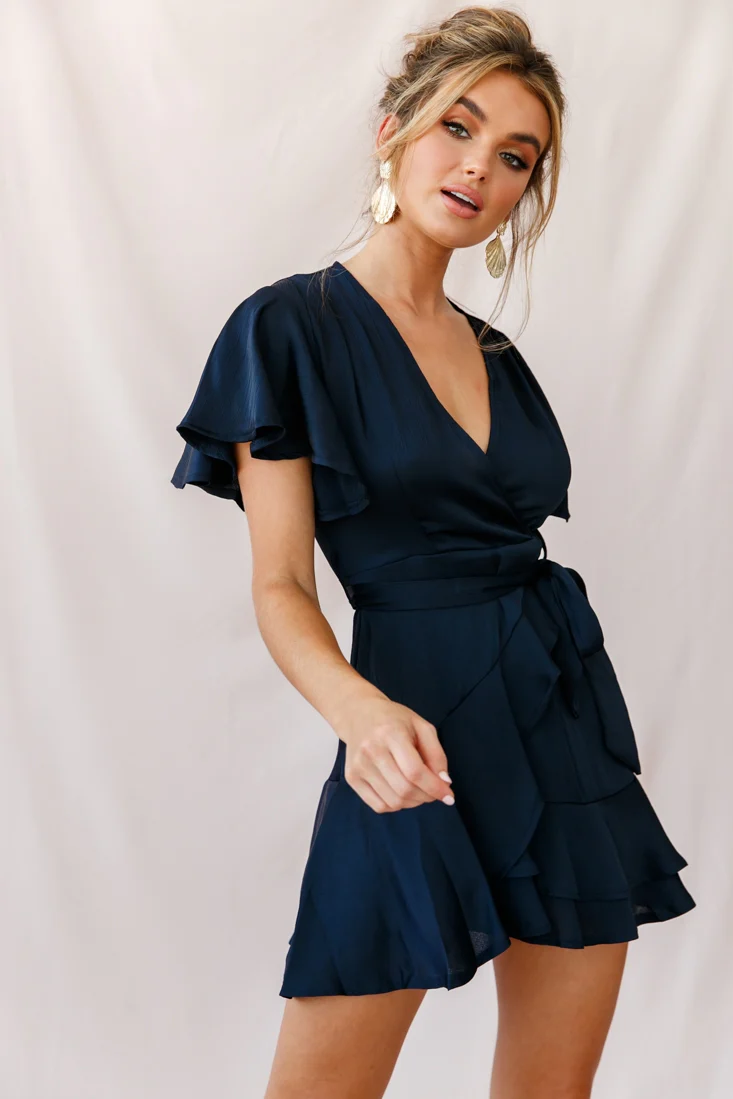 Cami Angel Sleeve Faux Wrap Dress Navy