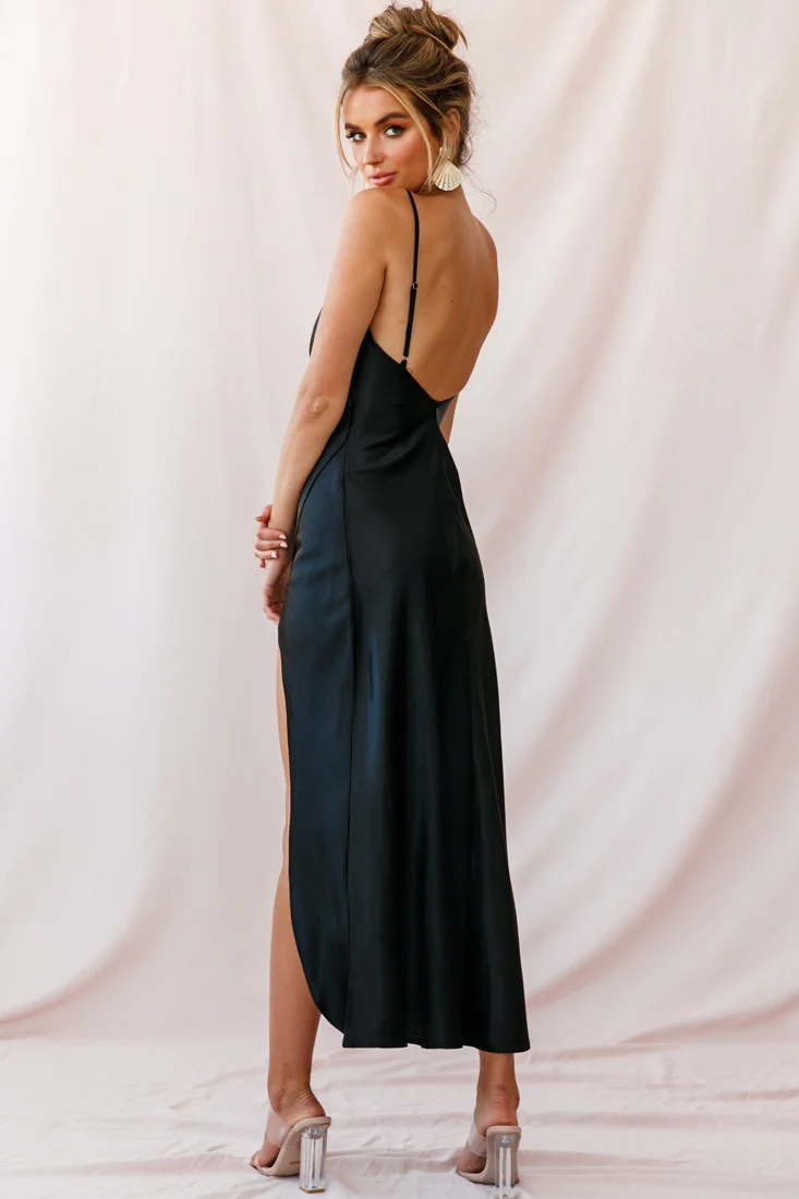 Pearl Ruffle Strap High-Low Hem Dress Navy