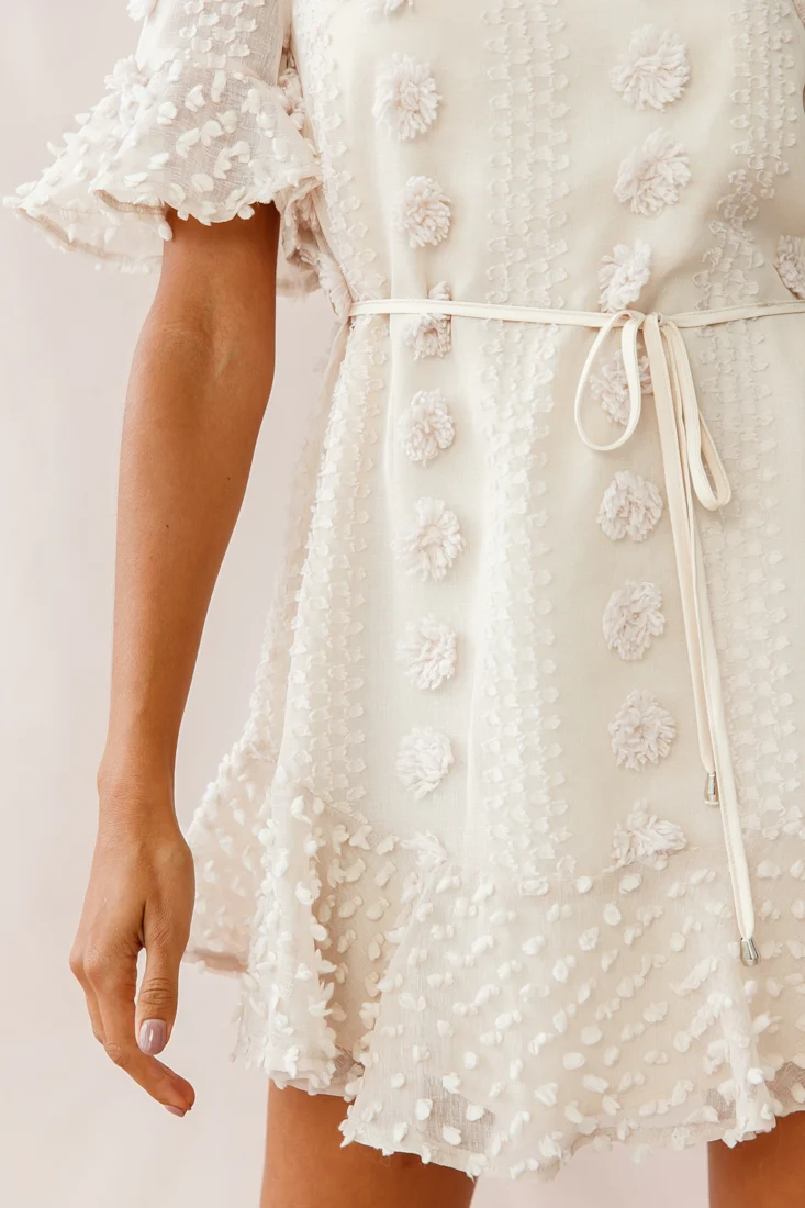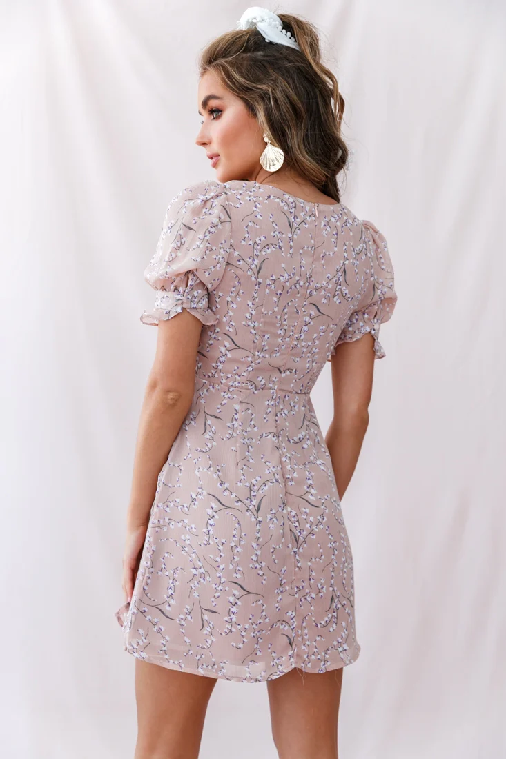 Misty Half Puff Sleeve Ruffle Detail Dress Tan