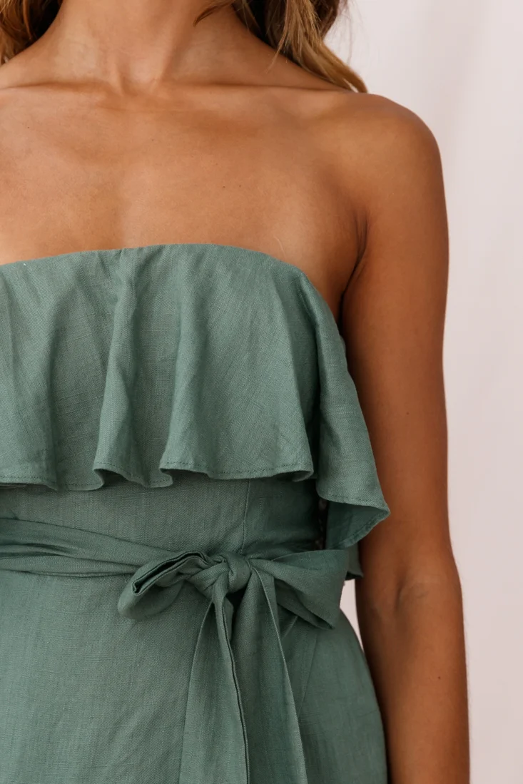 Hamilton Bandeau Ruffle Midi Dress Olive