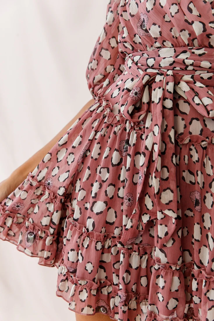 Cherish Bow Shoulder Ruffle Detail Dress Rose