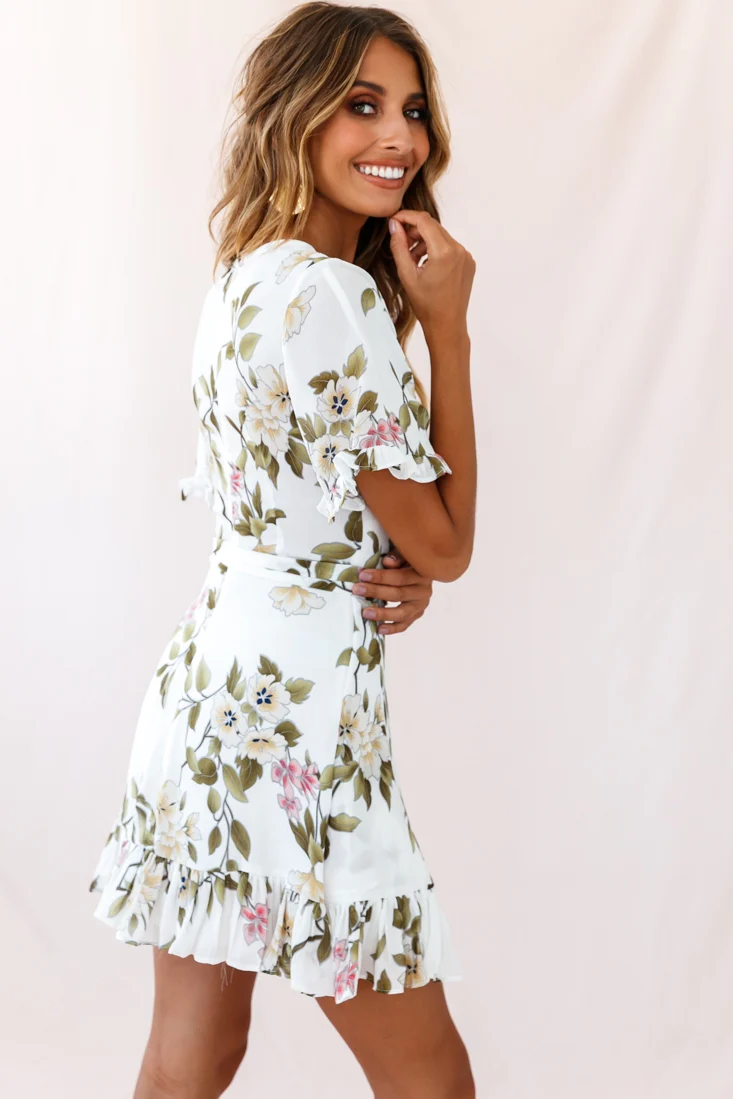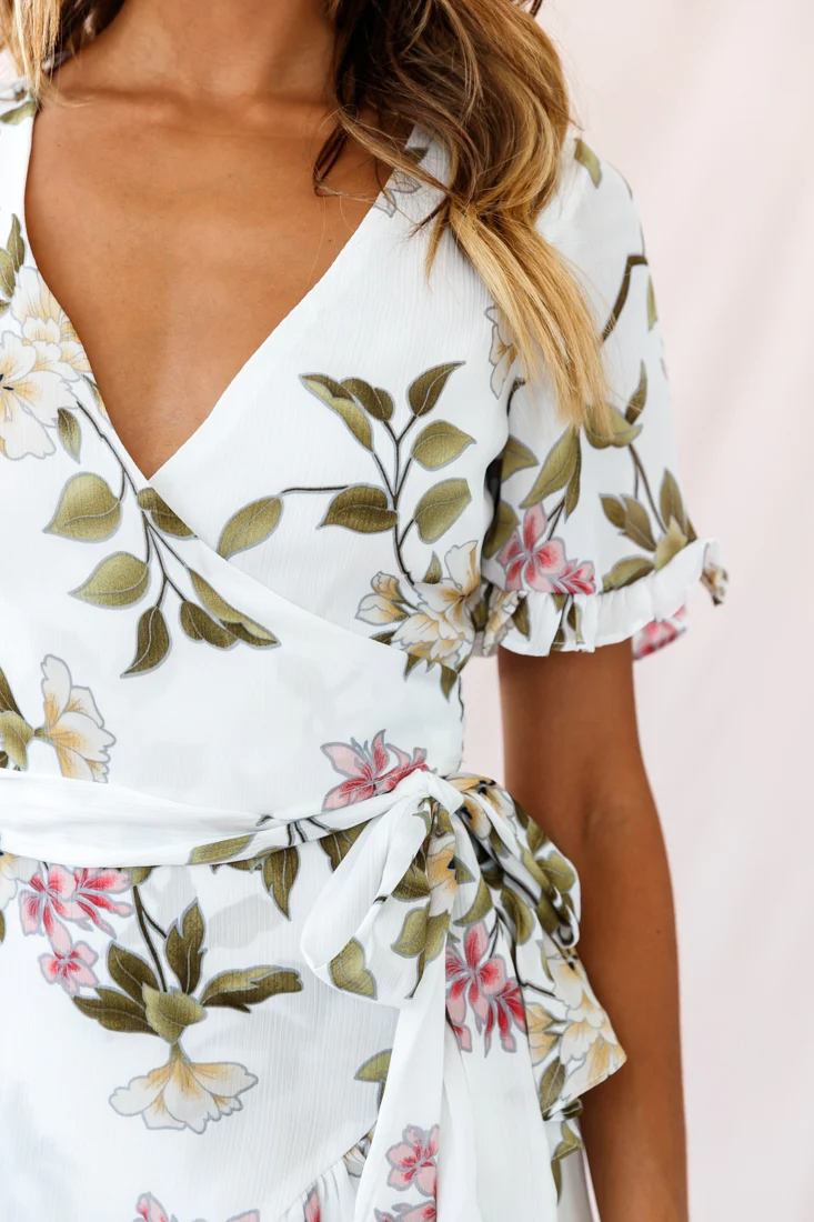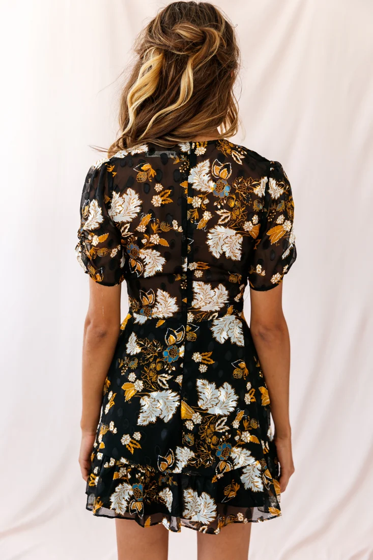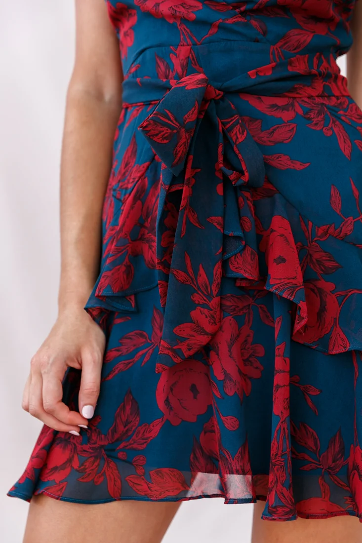 Laney Cutout Back Ruffle Detail Floral Dress Red
