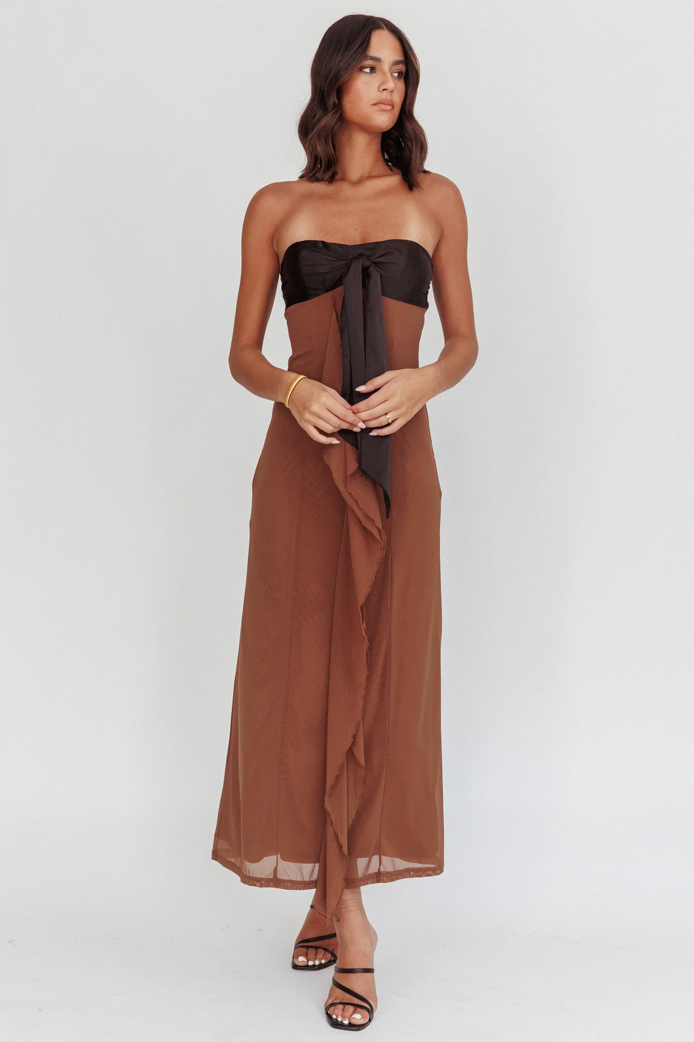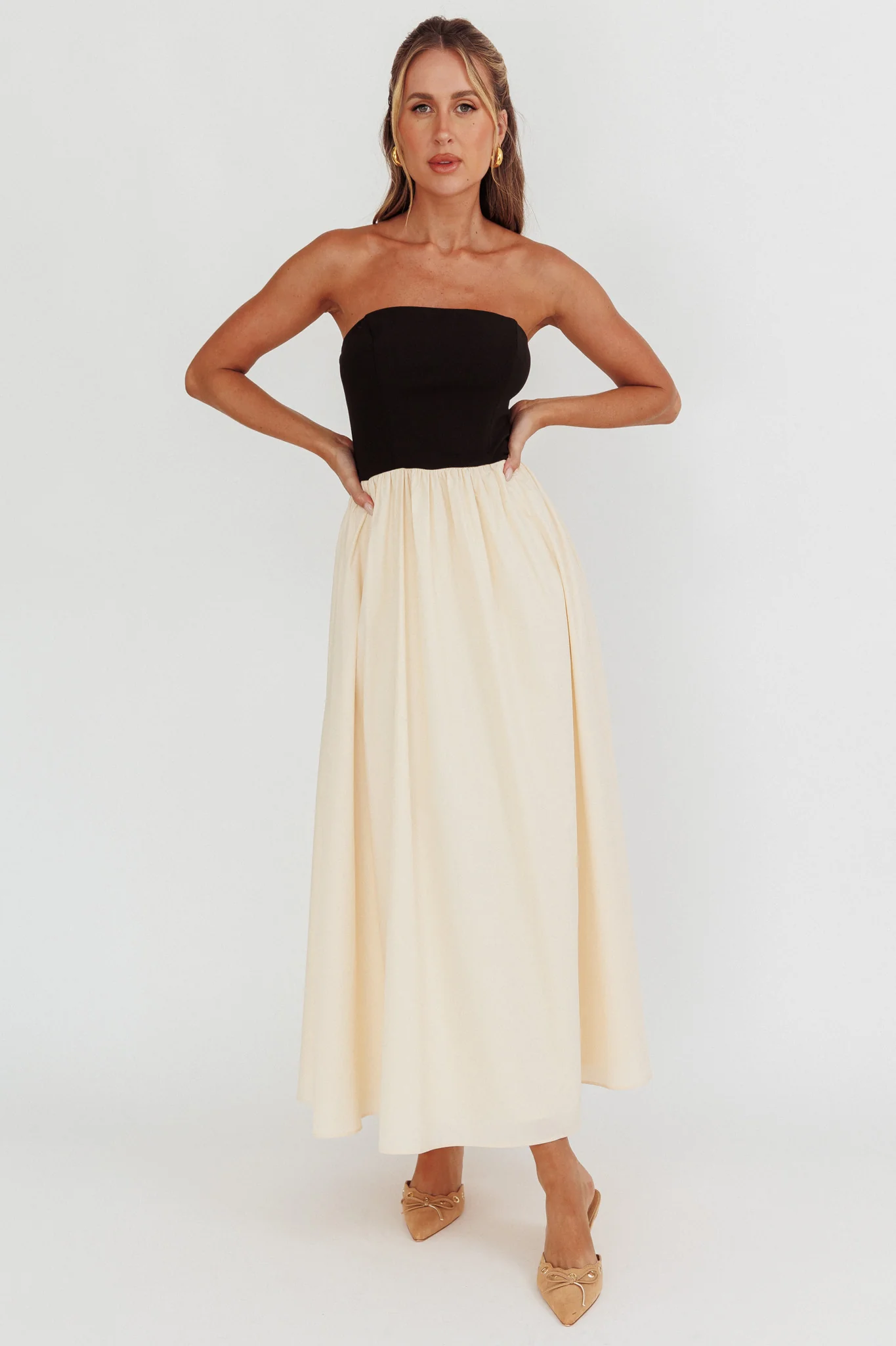 Princess Strapless Contrast Maxi Dress Black/Beige